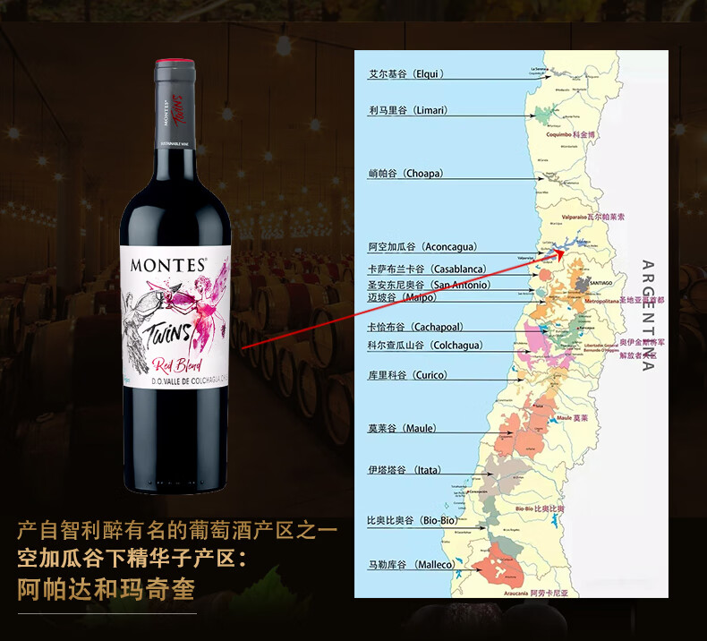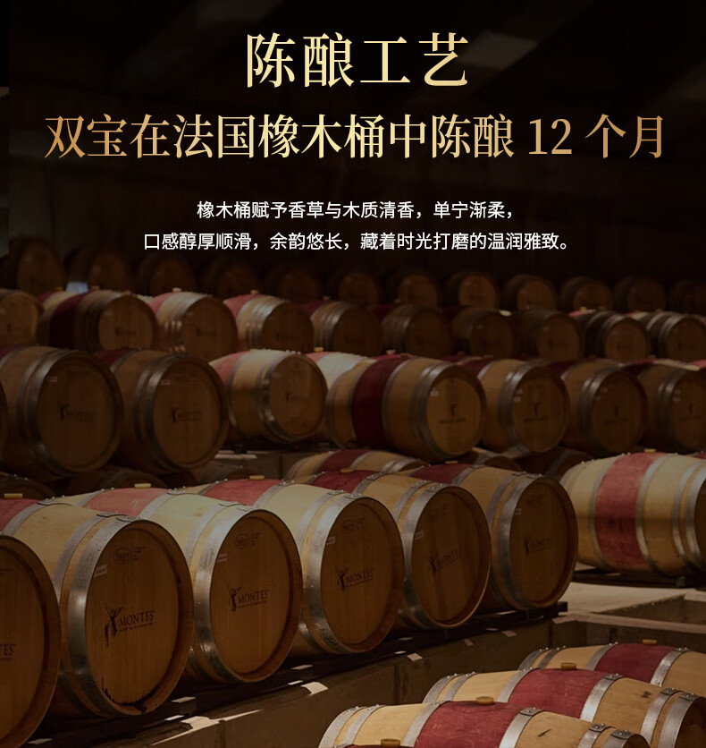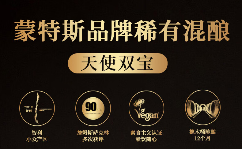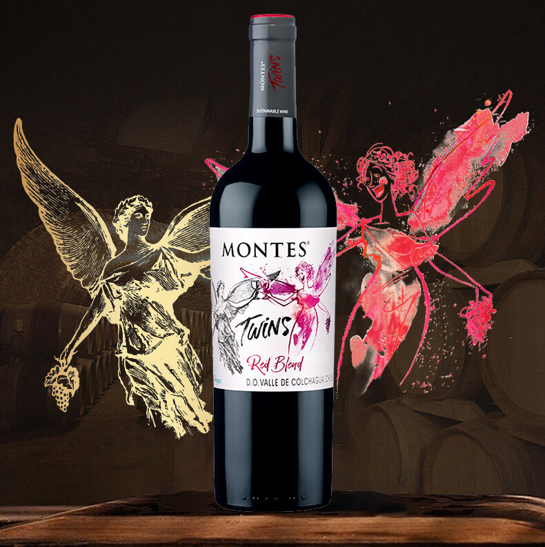 蒙特斯智利原瓶进口天使双宝干红葡萄酒750ml混酿红酒双支礼袋 双宝整箱