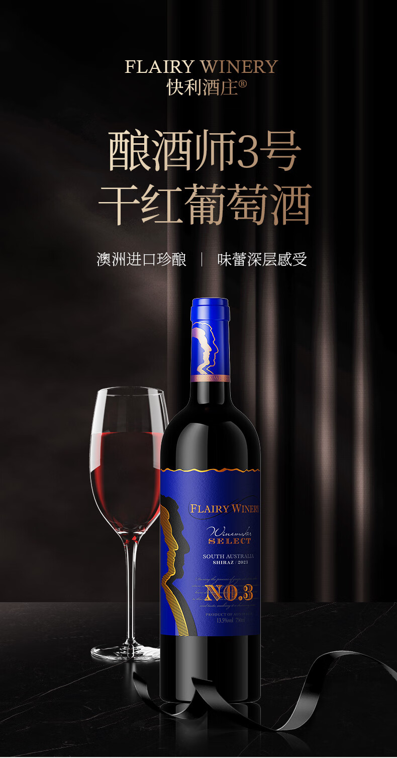 快利酒庄酿酒师3号澳大利亚进口13.5度西拉橡木桶酿造干红葡萄整箱750ML*6 快利酒庄酿酒师3号干红*6瓶 快利酒庄酿酒师3号干红*6瓶