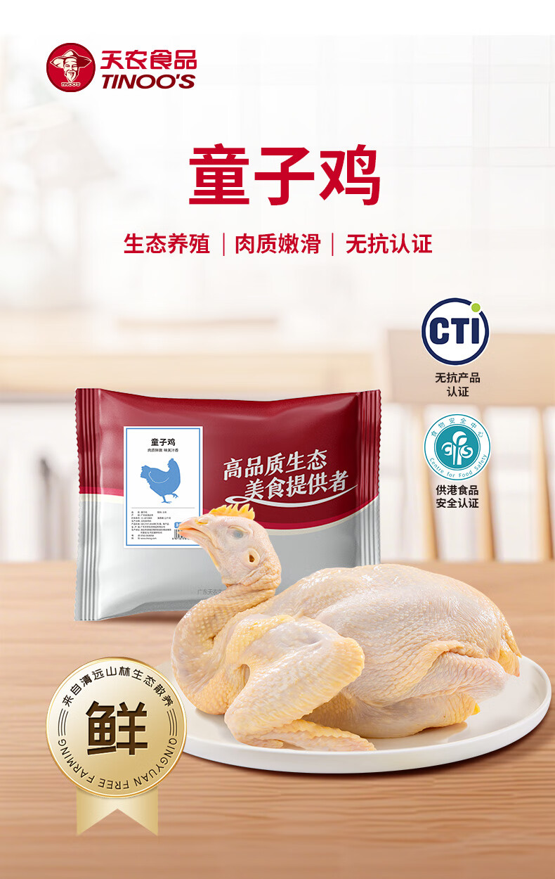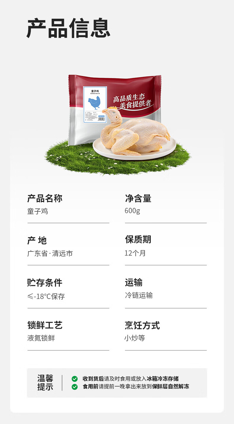 天农清远岭南童子鸡冷冻供港黄羽鸡新鲜无抗鸡肉农家散养土鸡清蒸烤鸡 童子鸡600-800g