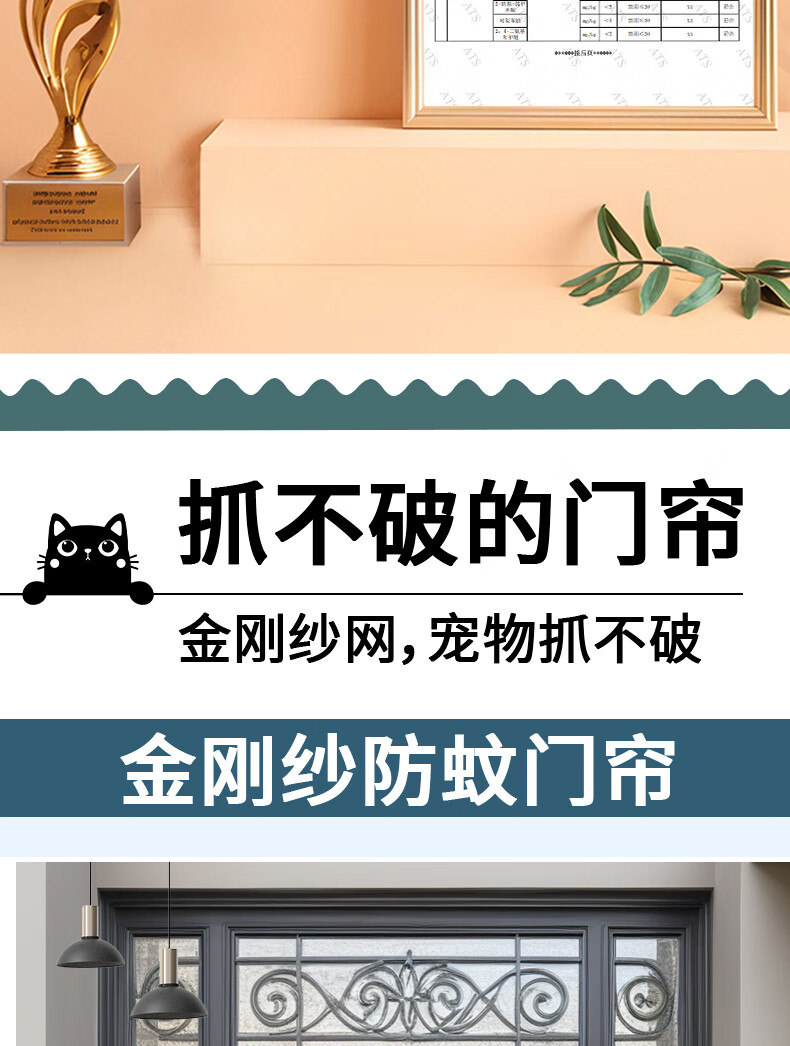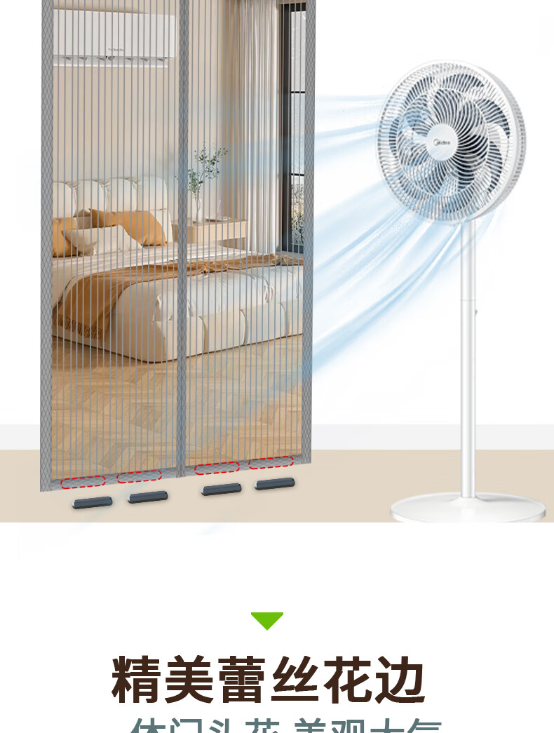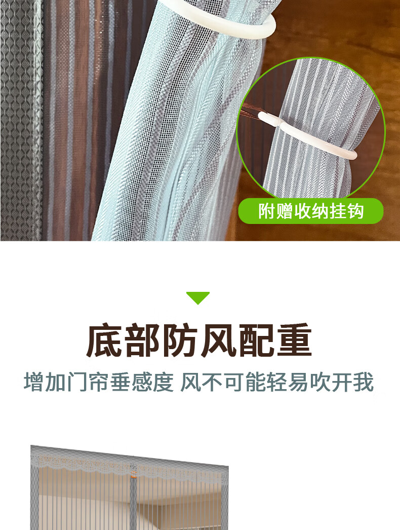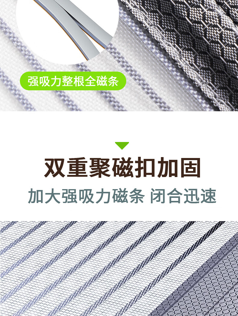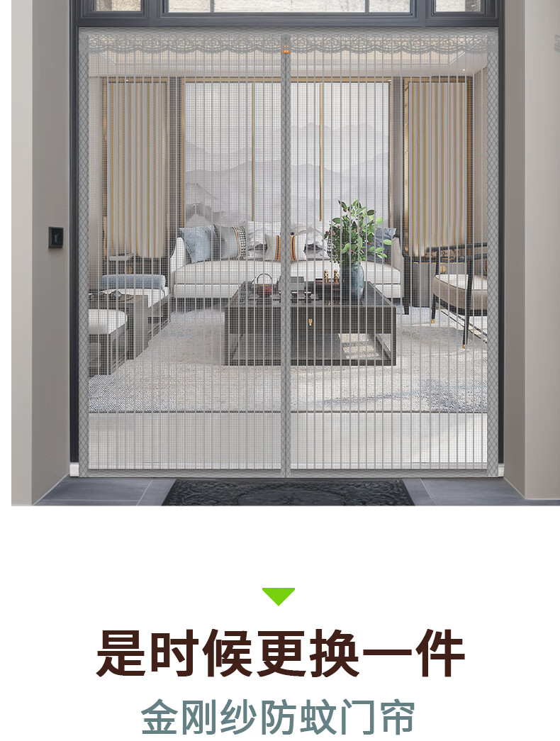 纱屋净防蚊门帘入户门卧室家用纱门防蚊网加密夏季金刚网免打孔全磁条 灰色金刚网【无条纹三边加宽】 85cm*210cm 免打孔 【宽*长】