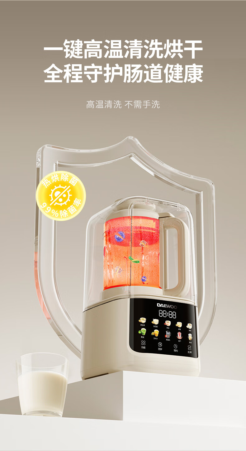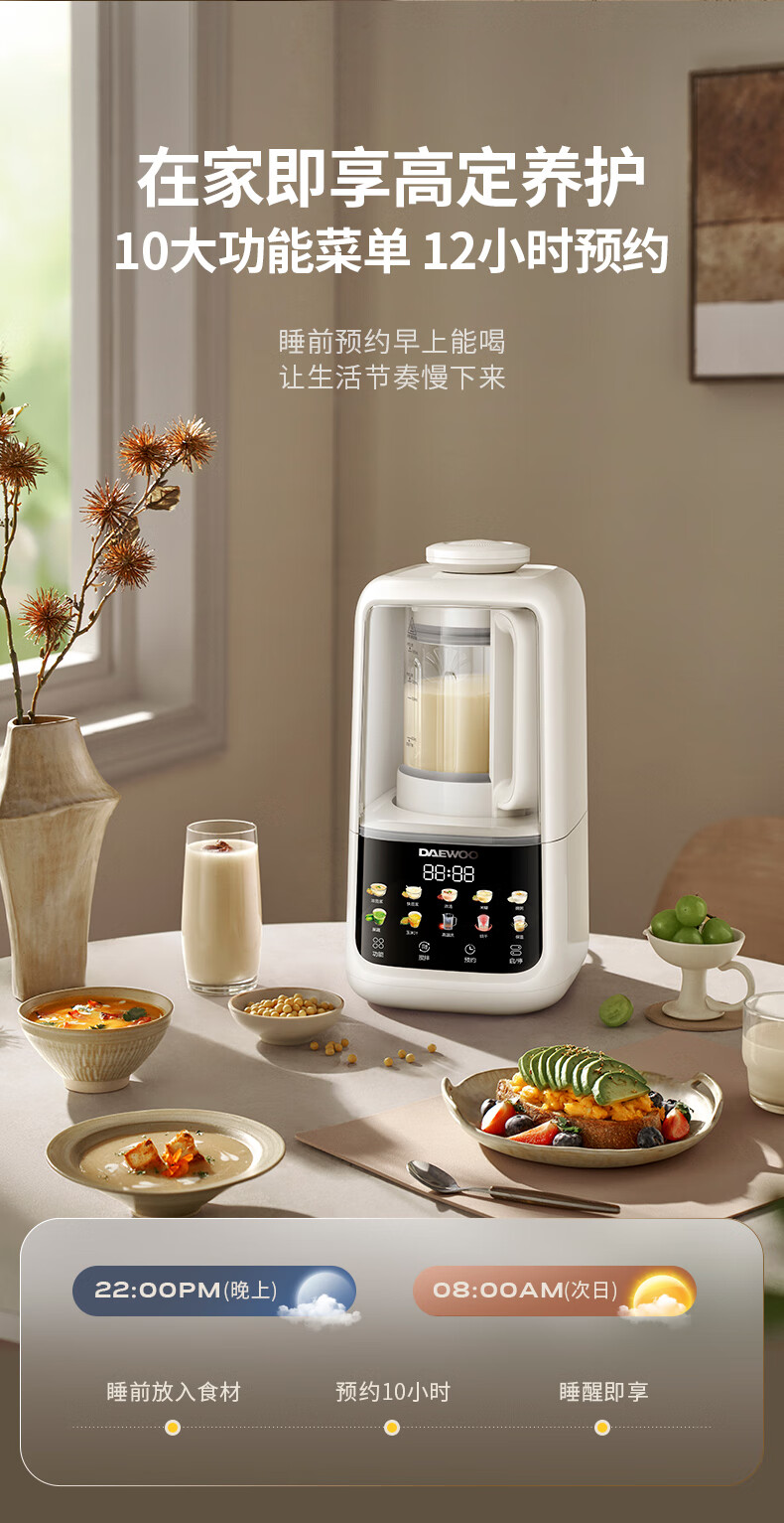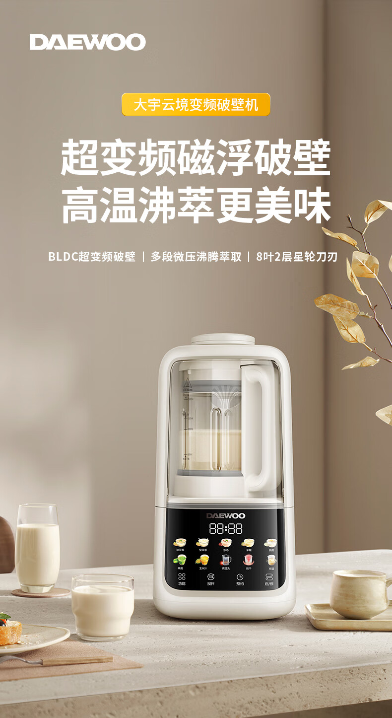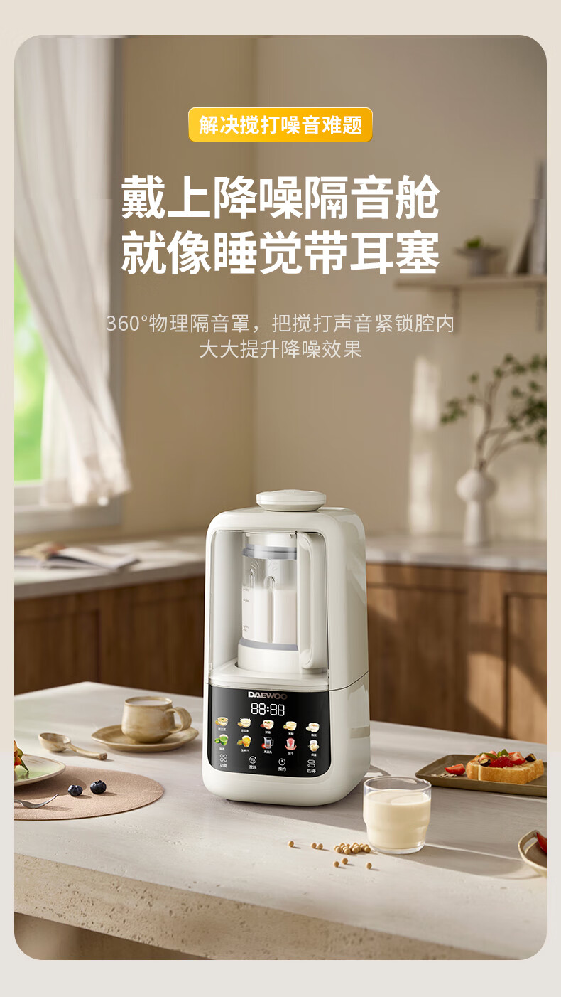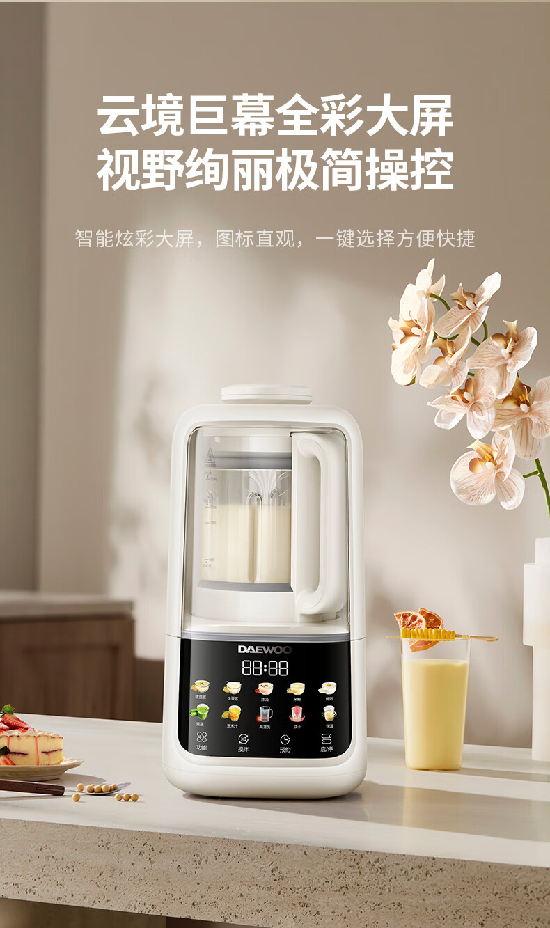 大宇(DAEWOO)破壁机家用免煮全自动1.5L豆浆机5-6人无刷变频轻音防糊底辅食料理机2025新品云境DY-SM18 米色