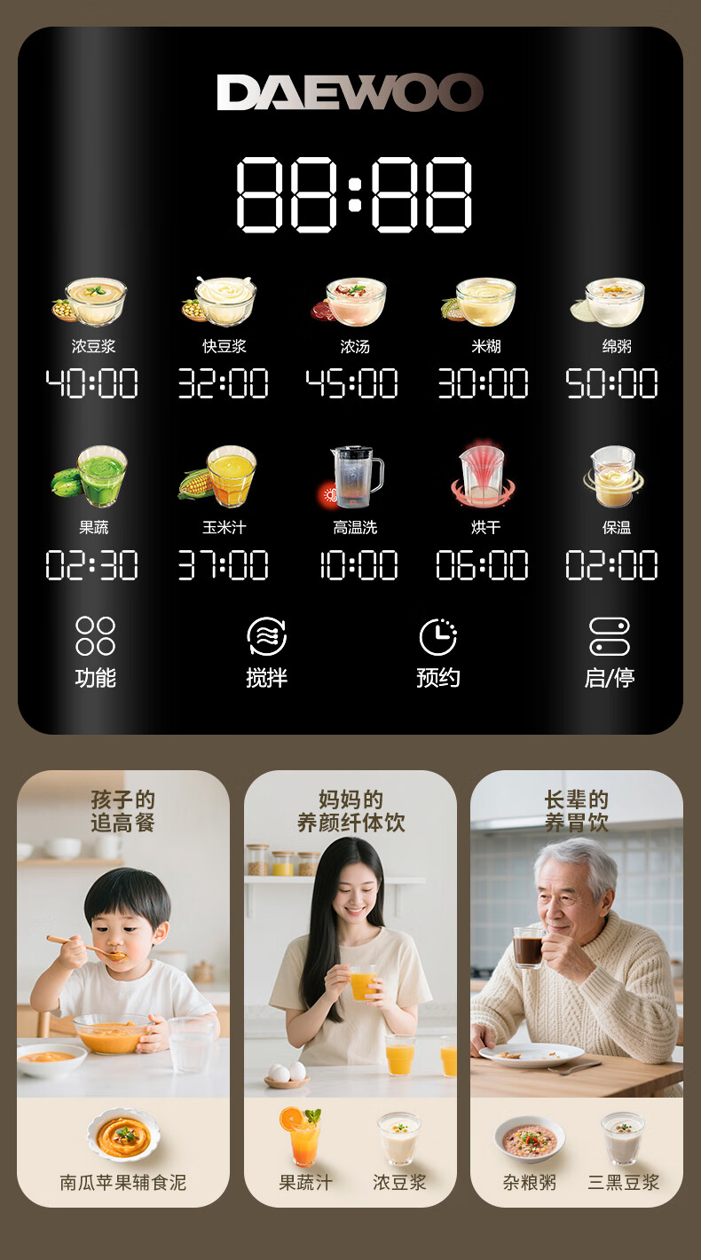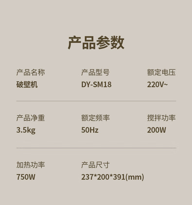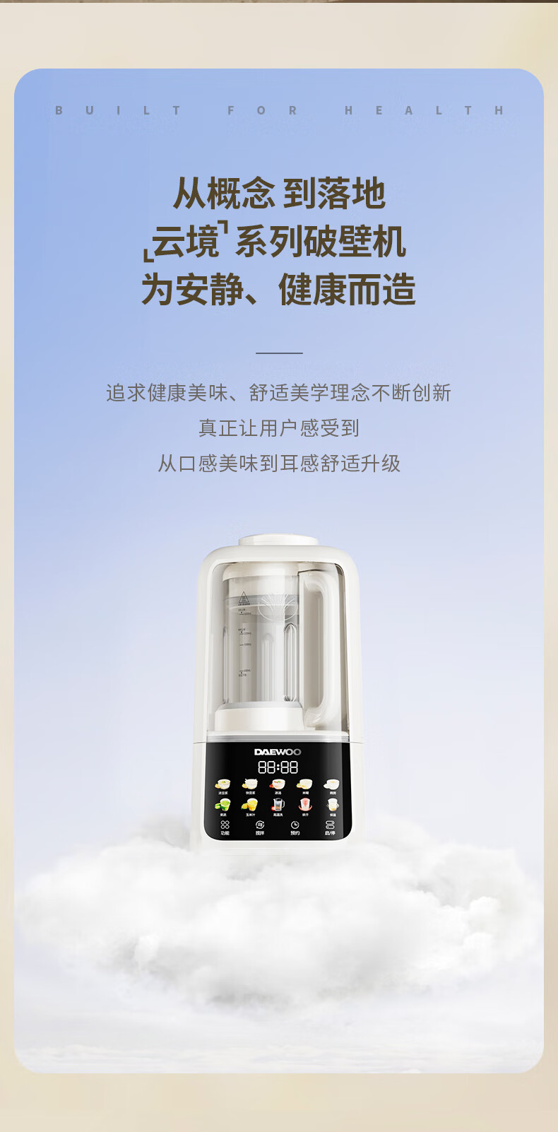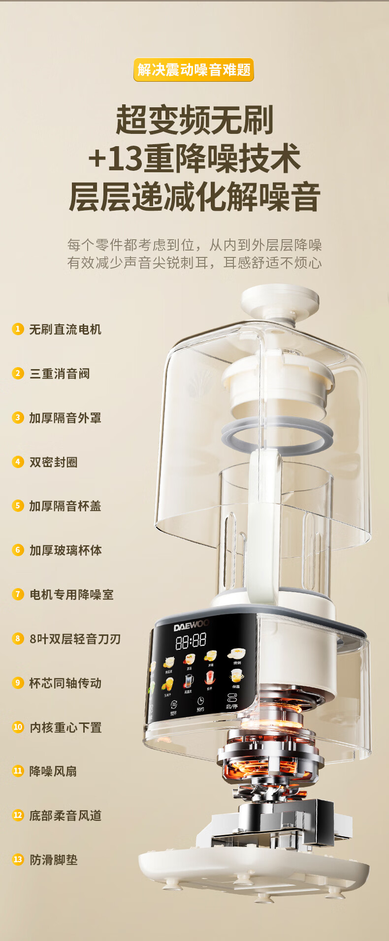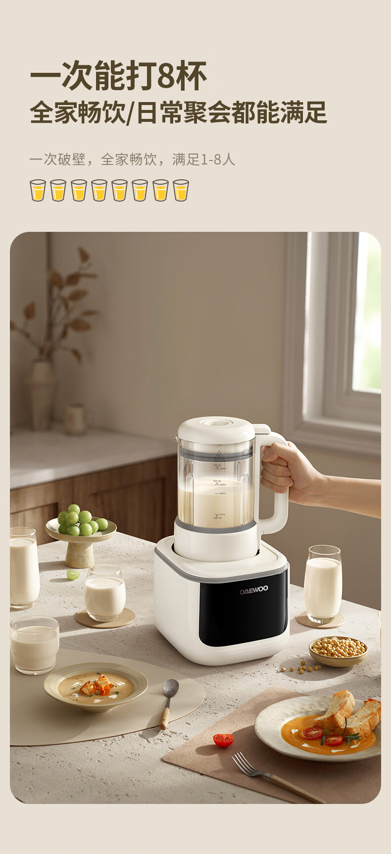 大宇(DAEWOO)破壁机家用免煮全自动1.5L豆浆机5-6人无刷变频轻音防糊底辅食料理机2025新品云境DY-SM18 米色