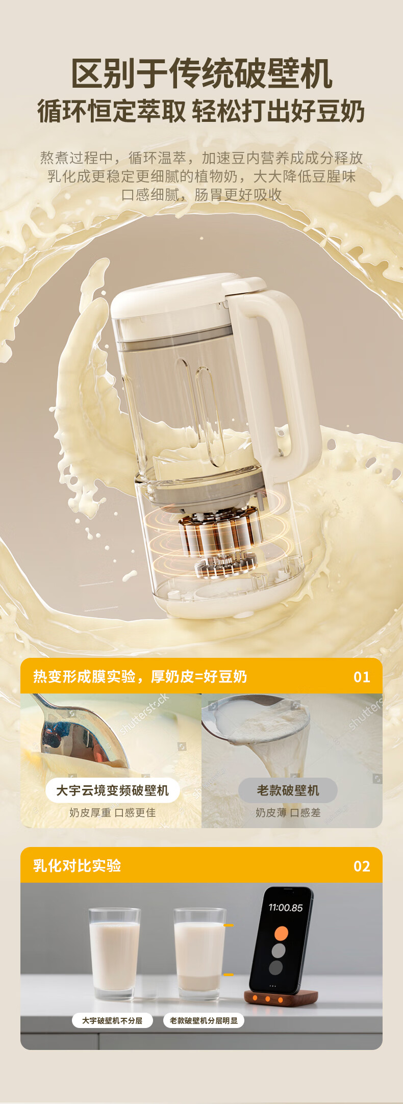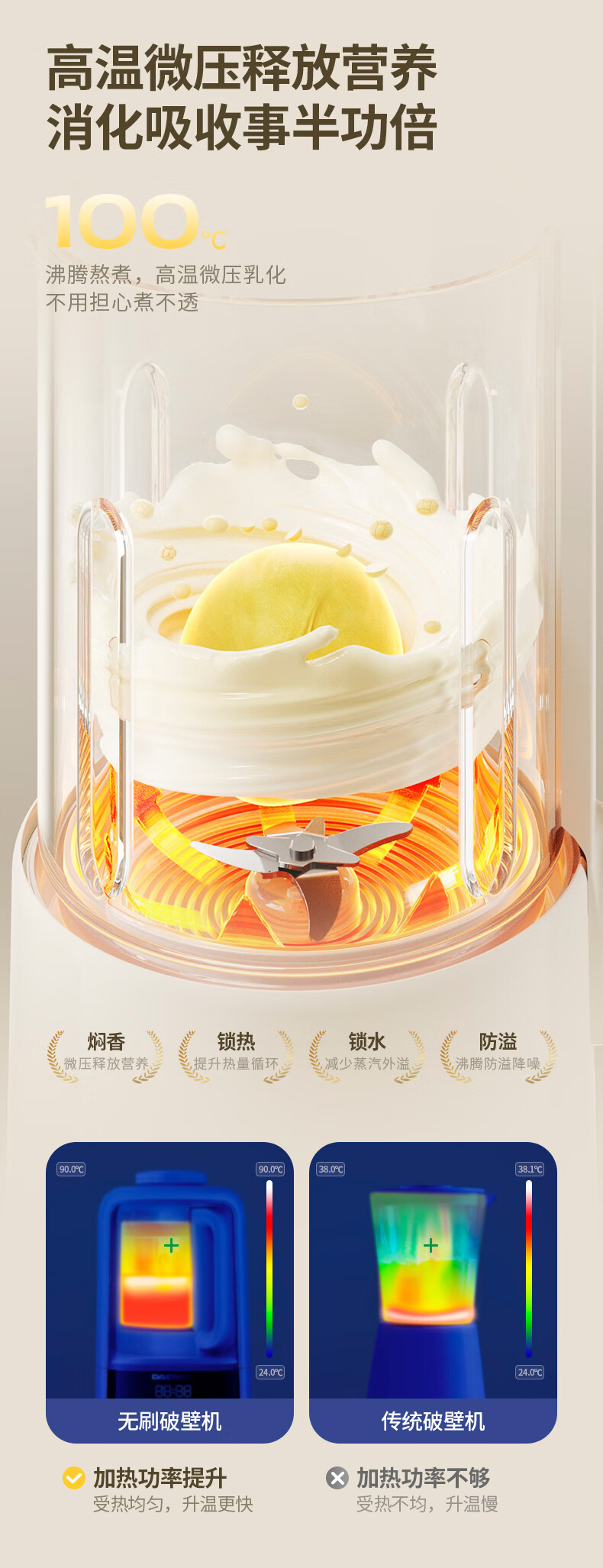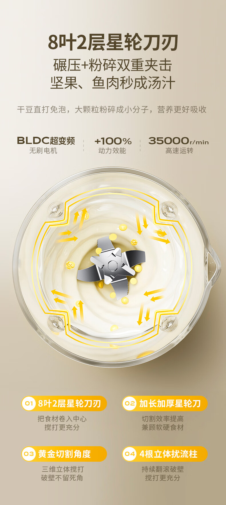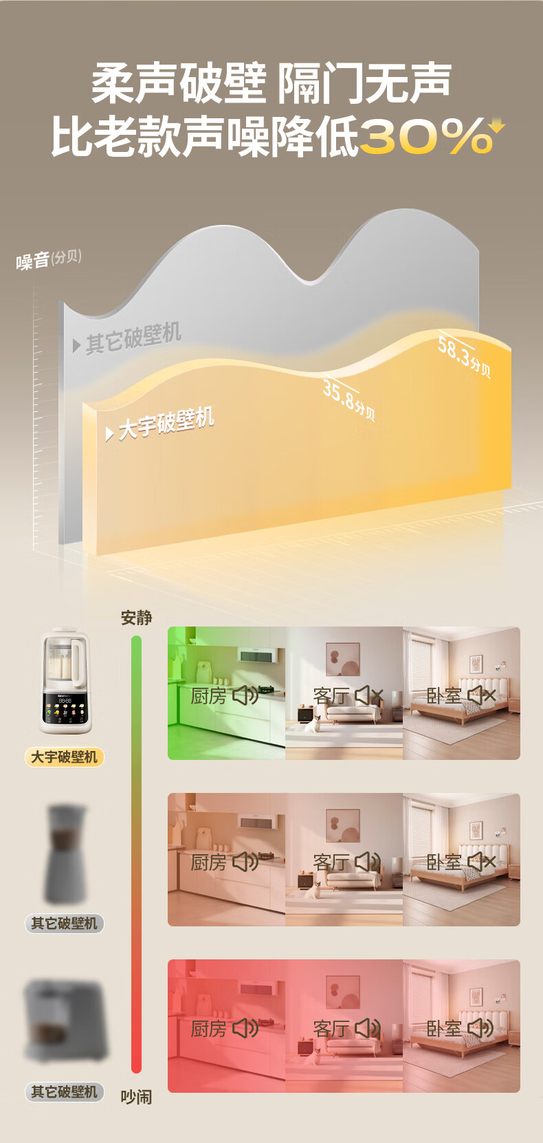 大宇(DAEWOO)破壁机家用免煮全自动1.5L豆浆机5-6人无刷变频轻音防糊底辅食料理机2025新品云境DY-SM18 米色