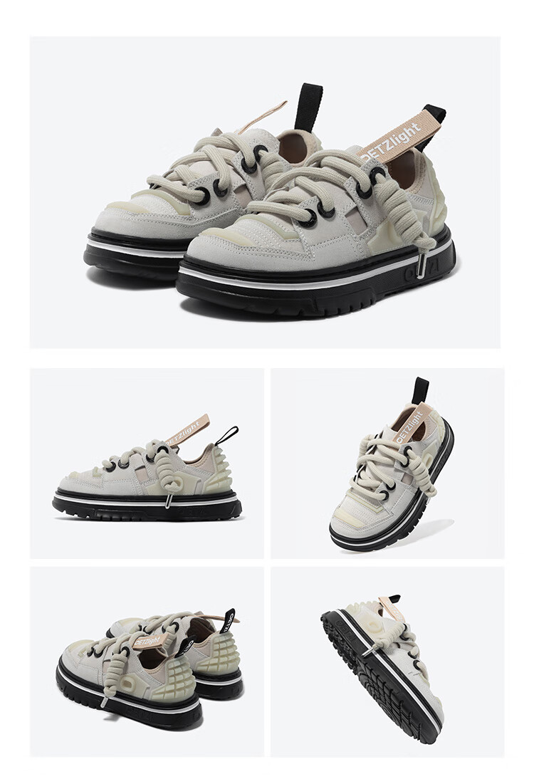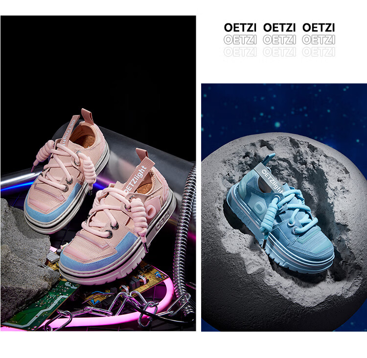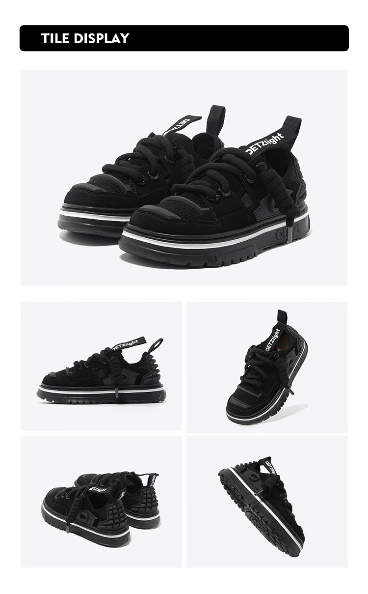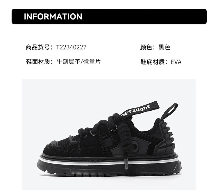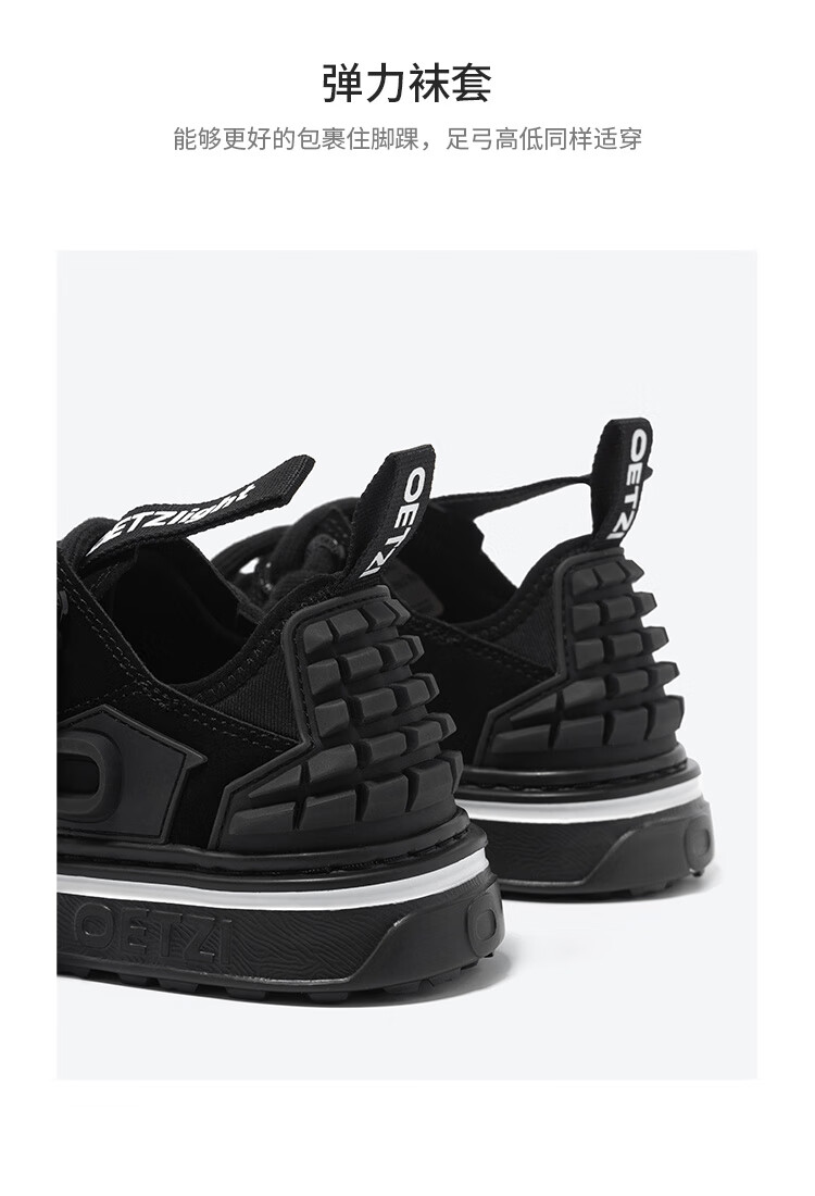 OETZI冰人奥兹 丑萌鞋男个性机能风板鞋情侣潮鞋低帮厚底休闲板鞋百搭 黑色T22340227 37