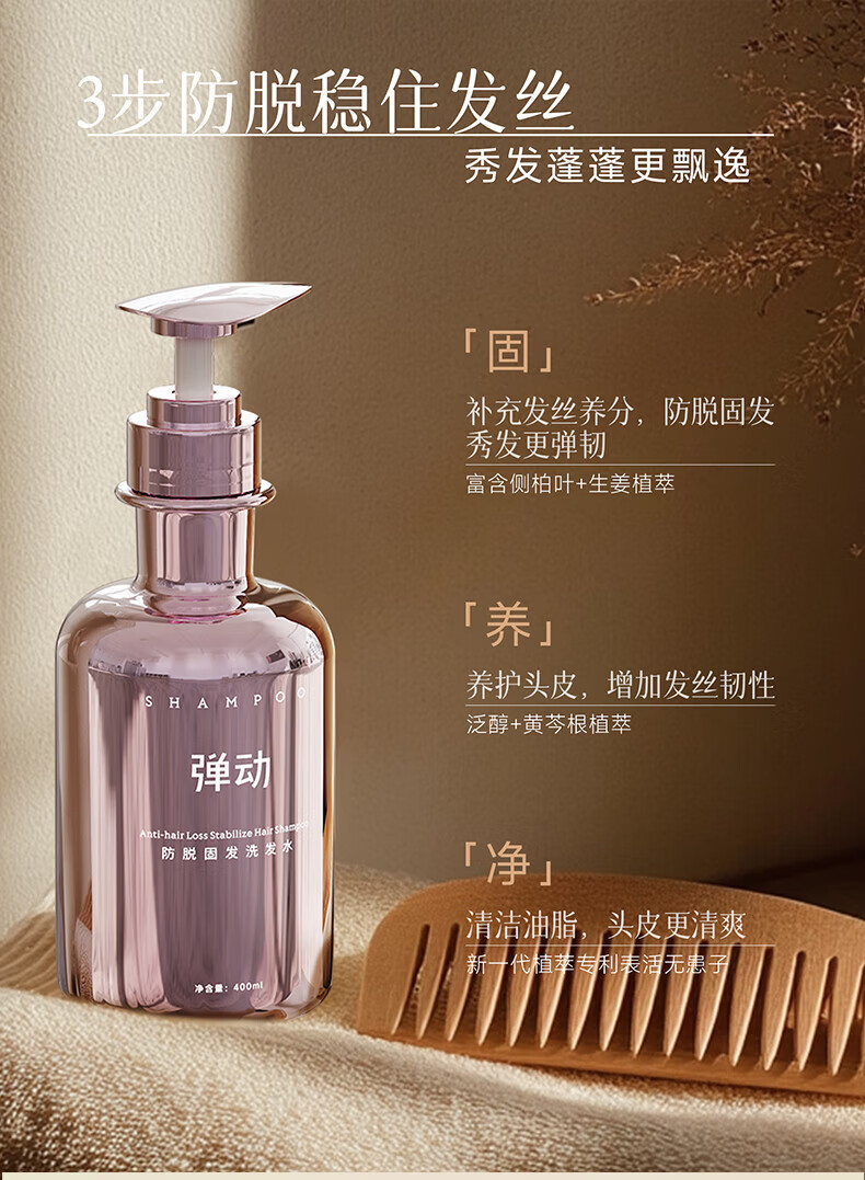 弹动防脱洗发水强韧健发洗发露滋润柔顺滑蓬松控清爽不油丝滑男女通用 【持证防脱】防脱洗发水400ml
