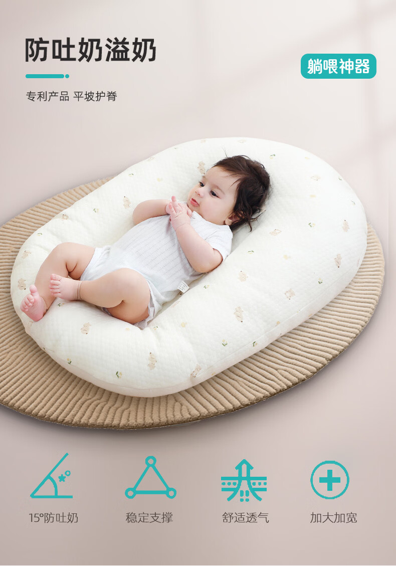 小白豚斜坡枕婴儿防吐奶可躺喂奶神器新生儿睡觉用枕头垫抬头大号五个月 豪华版 (A类品质)吉祥小象+长颈鹿枕套