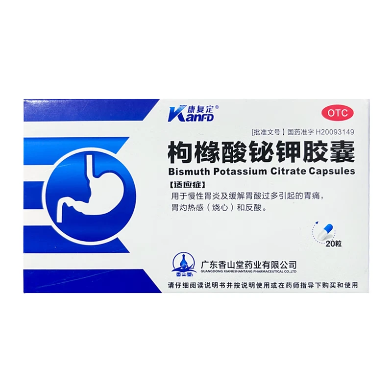 [康复定]枸橼酸铋钾胶囊 0.3g*20粒 12盒装 幽门螺旋杆菌四联药-全新疗法治口臭疗程药去除口气胃痛烧心灼热反酸新疗法国药 14天疗程-双灭菌