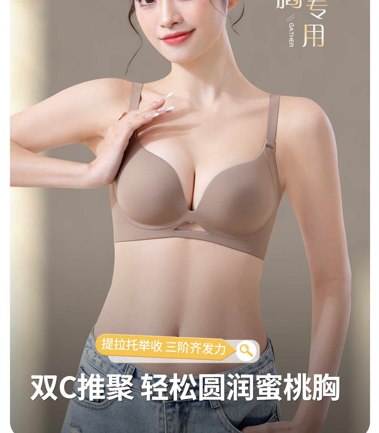 PICTURE无痕内衣女小胸聚拢显大不空杯收副乳上托防下垂平胸专用性感文胸 黑色豹纹+赫本黑 XL (推荐125-140斤38/85AB)