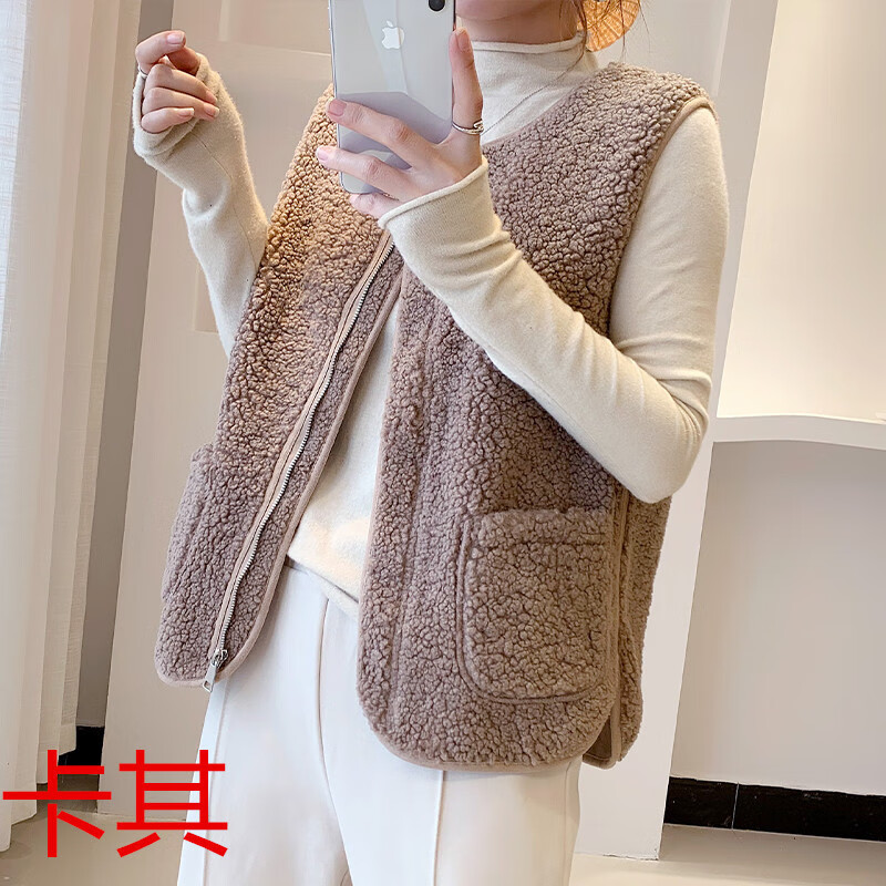 【甄选】羊羔毛马甲女2024秋冬新款韩版百搭外穿皮毛一体背心毛绒 卡其色 (1件装) S