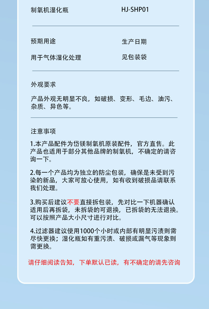 岱镁制氧机氧气湿化瓶氧气机配件原装加湿水杯通用湿化杯 直插湿化瓶大号(送连接管)