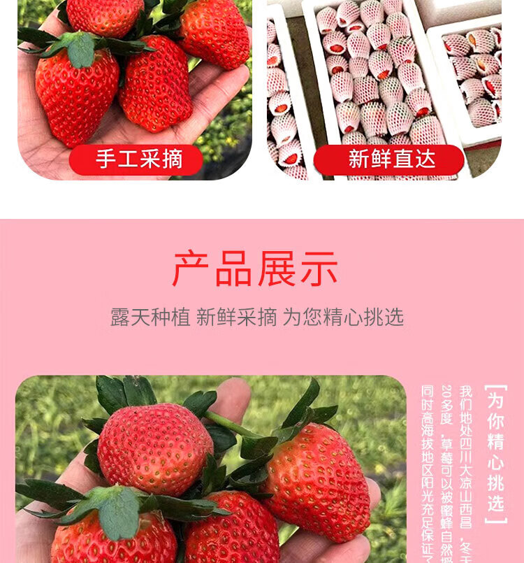 果食鲜丰四川大凉山草莓新鲜草莓水果高山露天种植红颜草莓现摘现发 大凉山草莓【250克/20-24枚】*4盒装