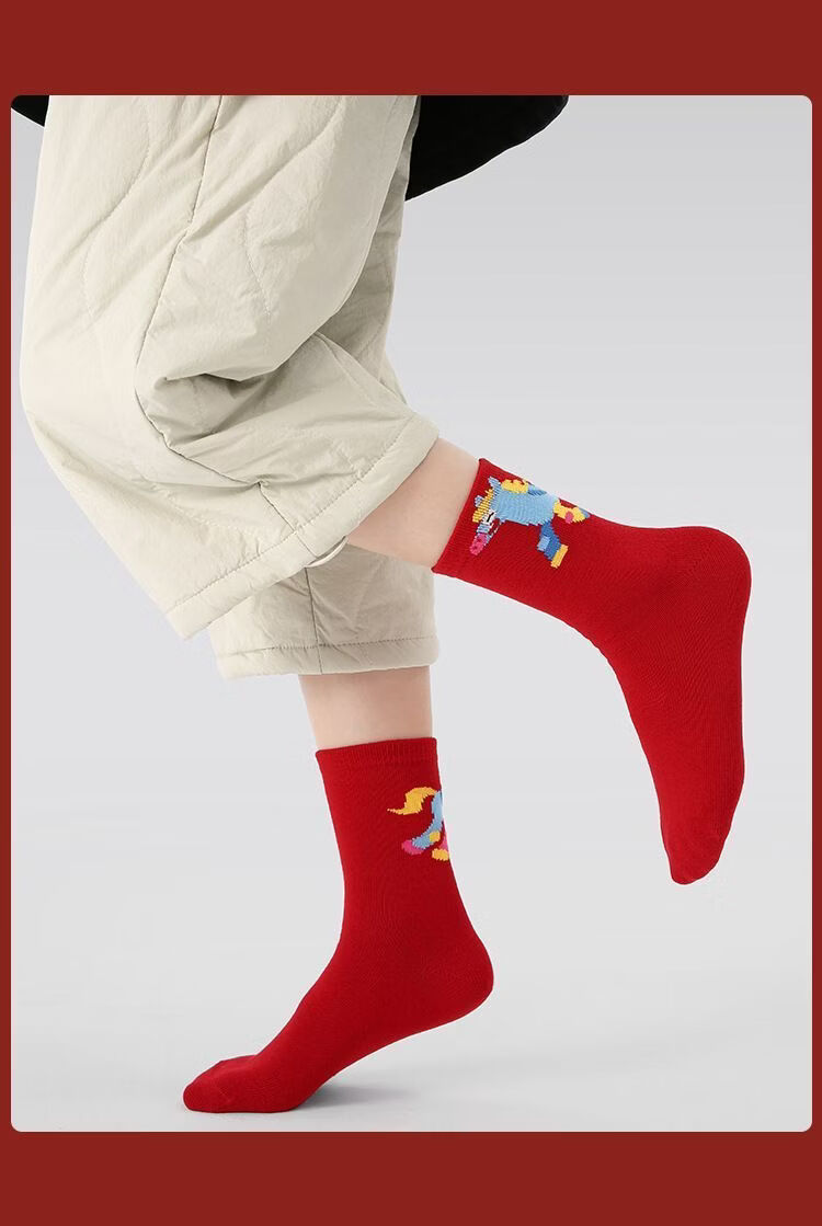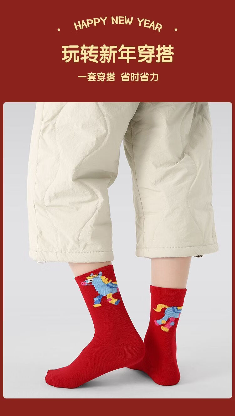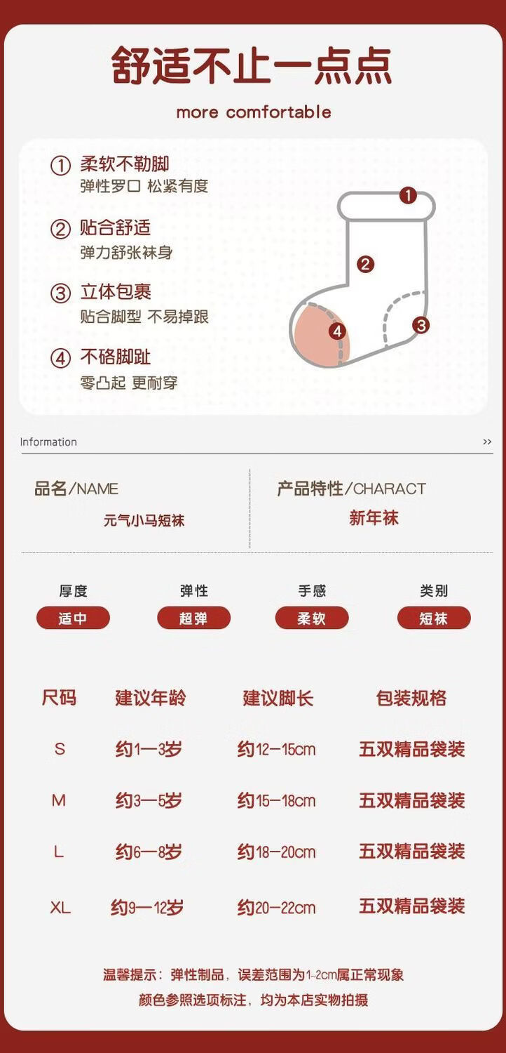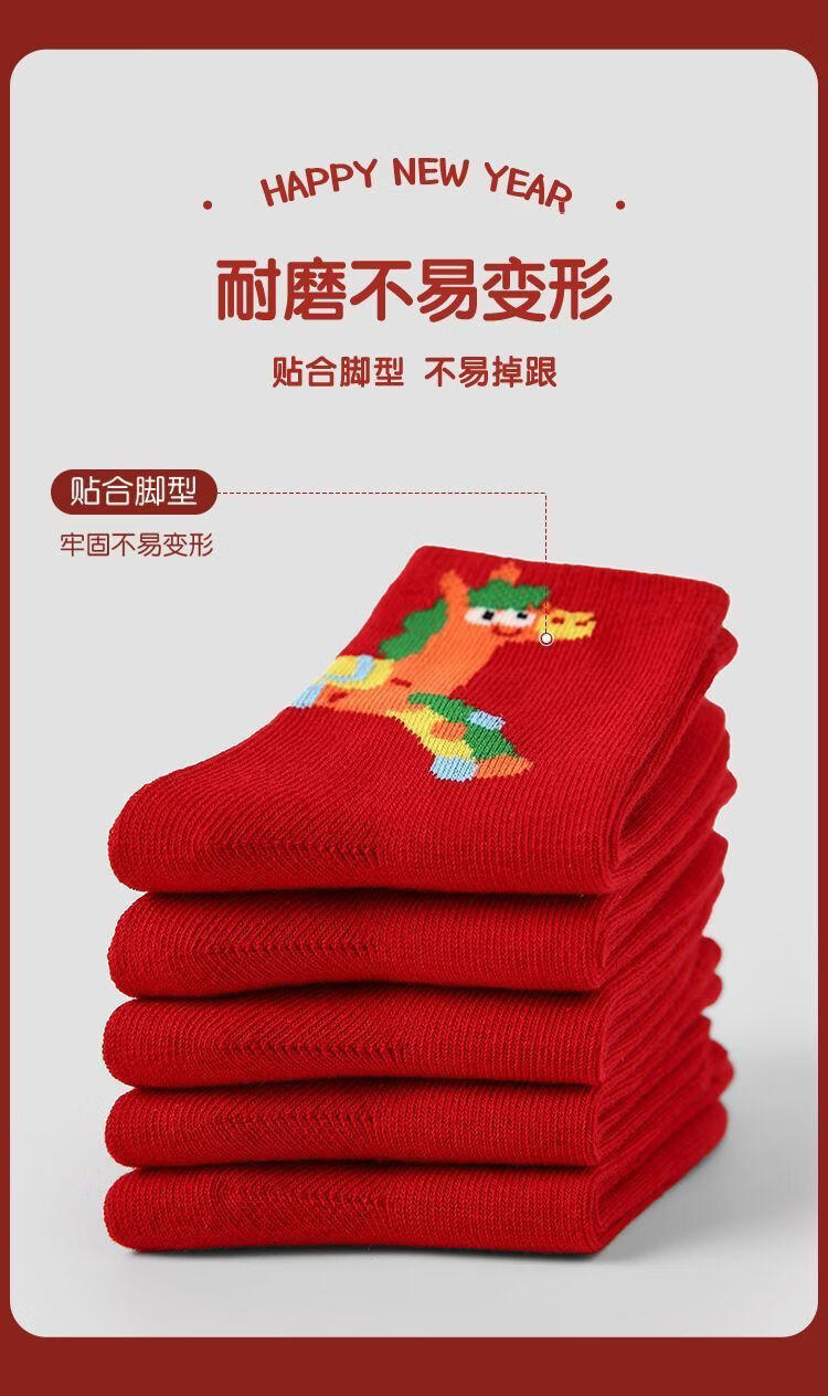 MQDMINI红袜子儿童红色马年男女童元气小马福来新年袜喜庆卡通袜 元气小马【5双装】MQD新年袜 9-12岁 【建议鞋码32-37】