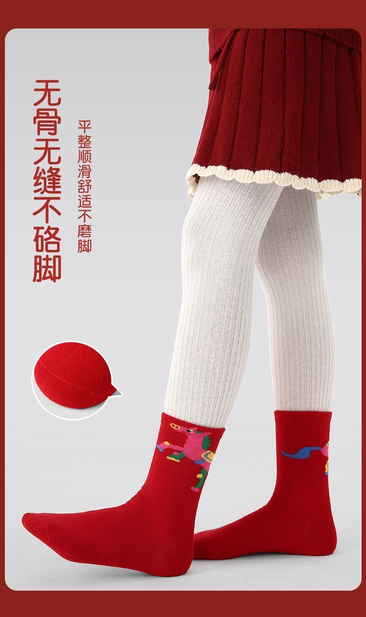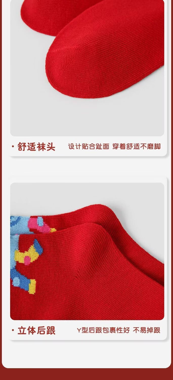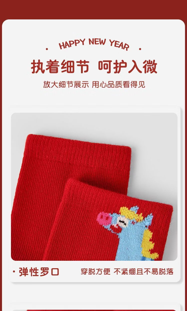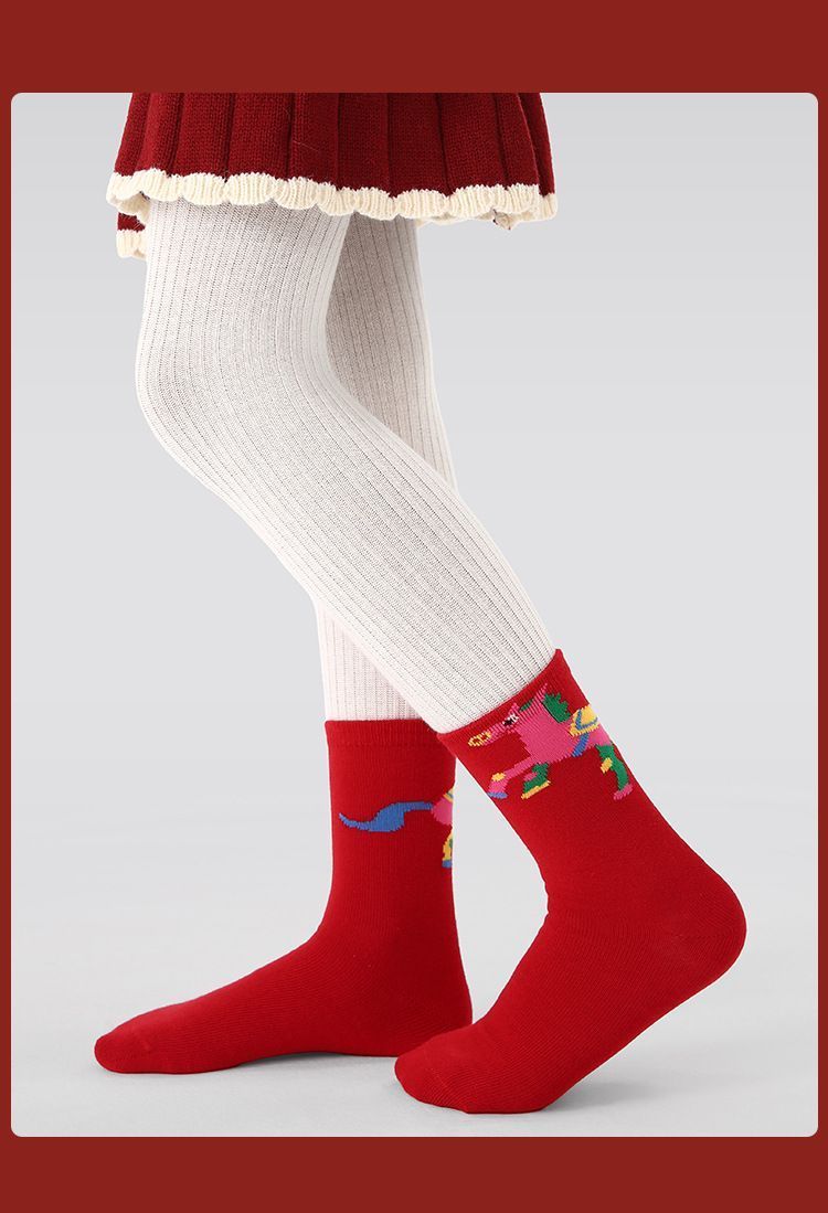 MQDMINI红袜子儿童红色马年男女童元气小马福来新年袜喜庆卡通袜 元气小马【5双装】MQD新年袜 9-12岁 【建议鞋码32-37】