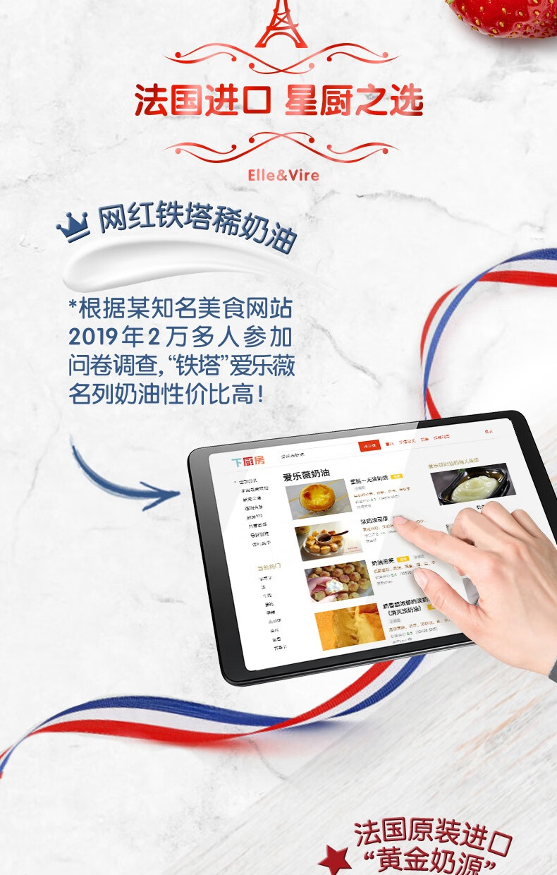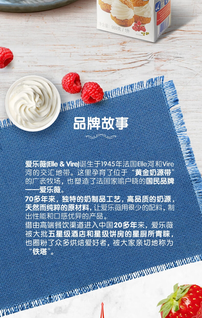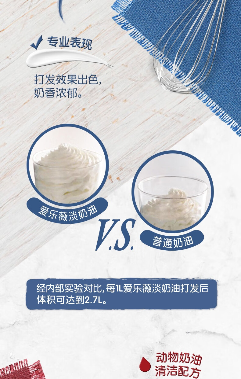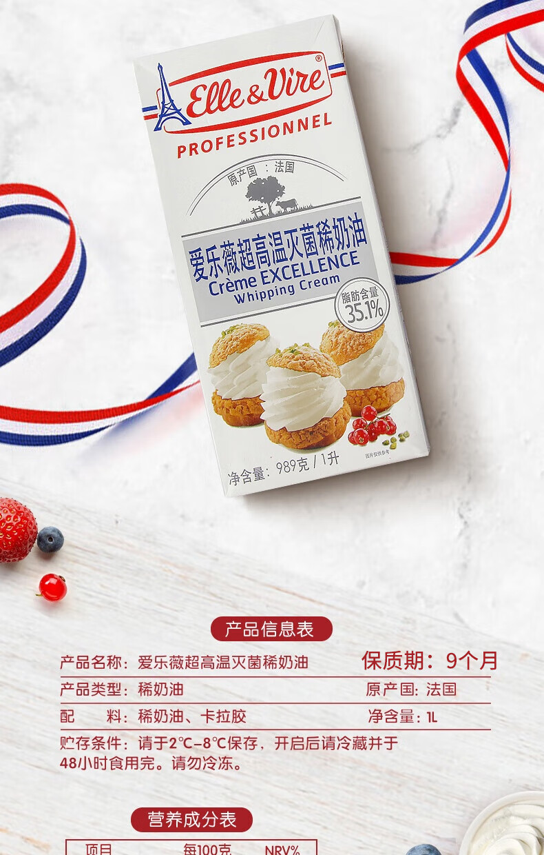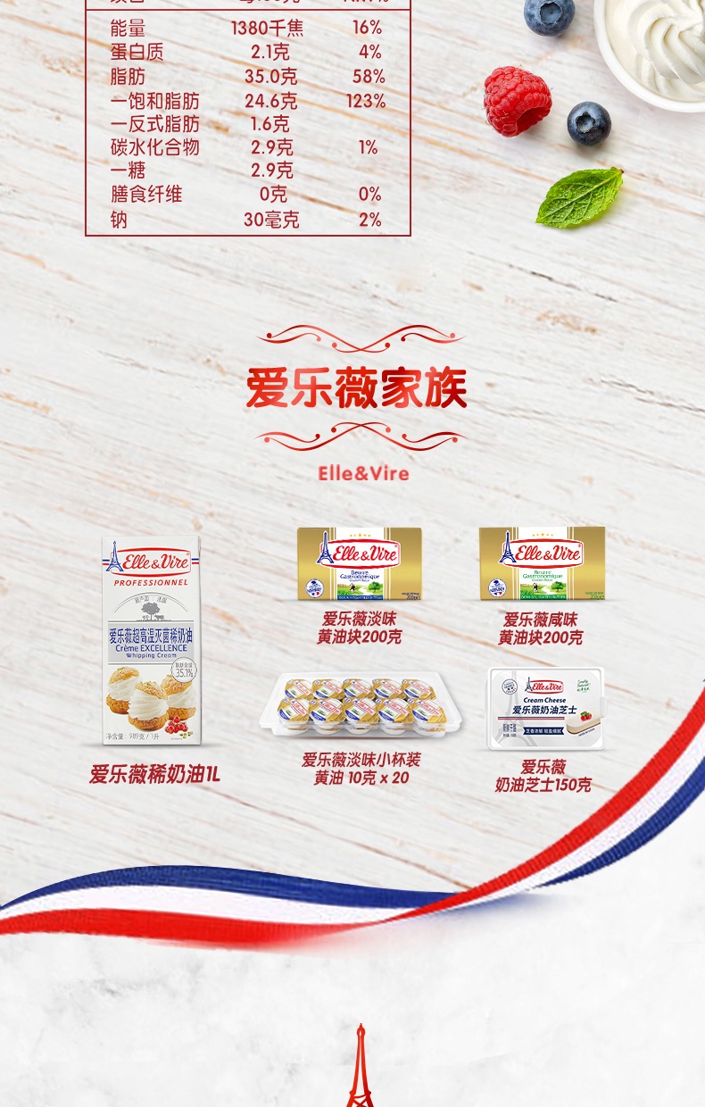 爱乐薇铁塔淡奶油1L法国进口蛋糕裱花烘焙原料(新老包装随机发货)