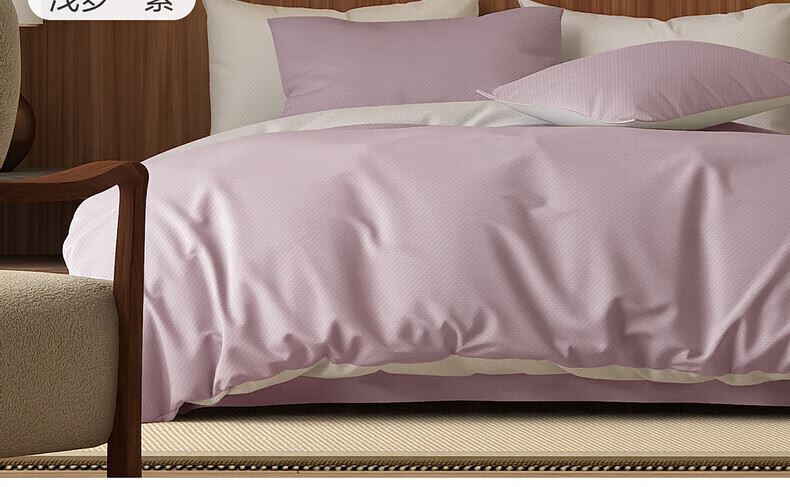百丽丝三四件套全棉简约素色床上四件套纯棉床单被套四季通用套件 浅梦·紫 床单款 (被套150*210cm)