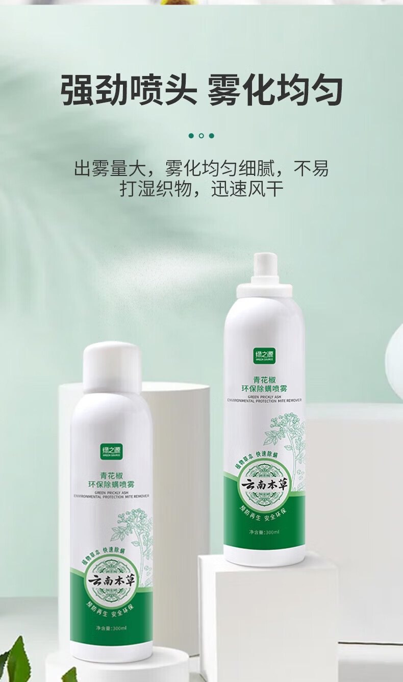 绿之源去螨虫床上免洗免晒家用抑螨 青花椒除螨喷雾2瓶装