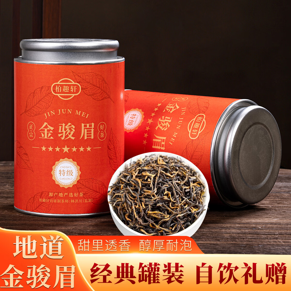 柏趣轩 武夷红茶金骏眉春茶茶叶 蜜香金骏眉暖胃红茶罐装两罐共500克