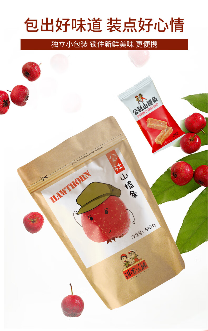 沂蒙公社0添加剂山楂条蜜饯零食510g(内置独立小包装)休闲零食果干制品