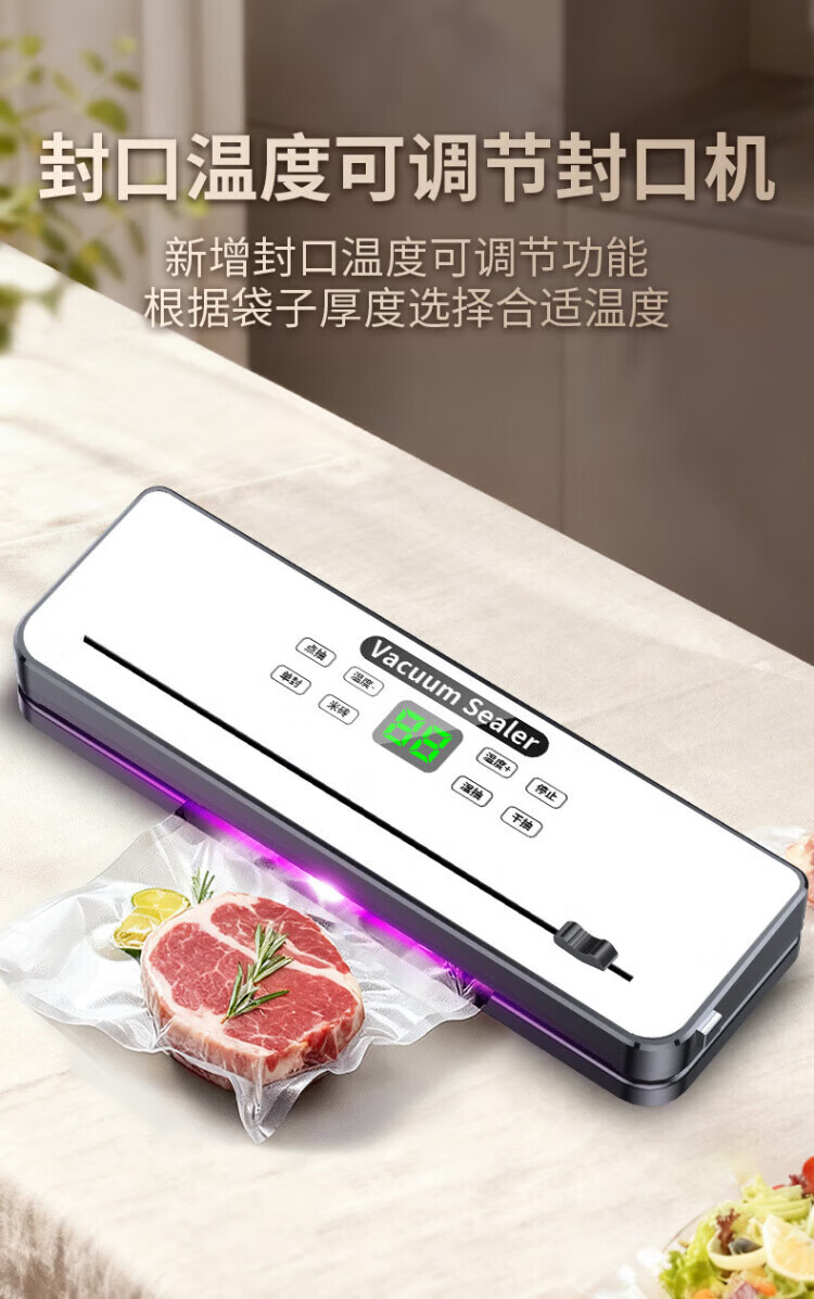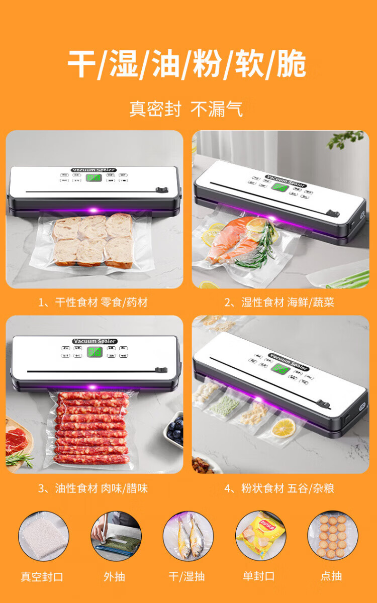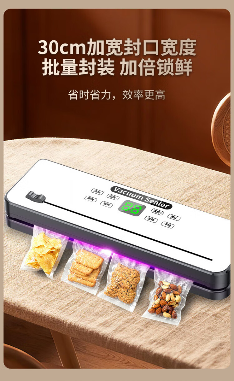 SSIIXX日本品牌抽真空封口机家用食品包装机保鲜机小型真空机家用商用塑封机 白色+50个真空袋 30m