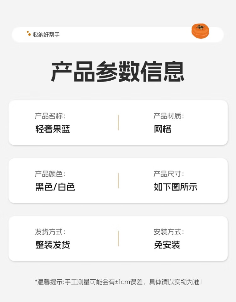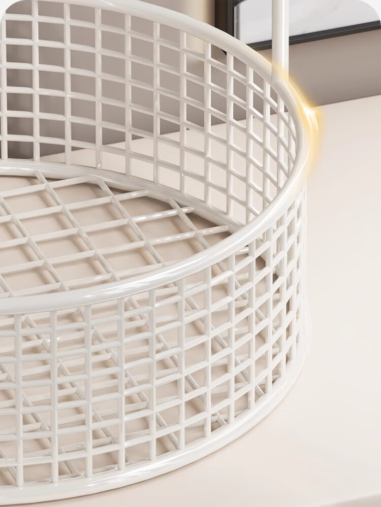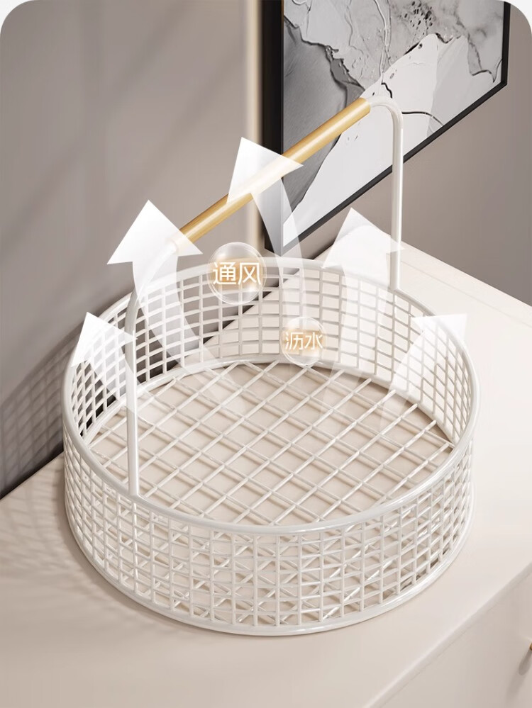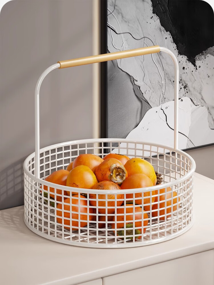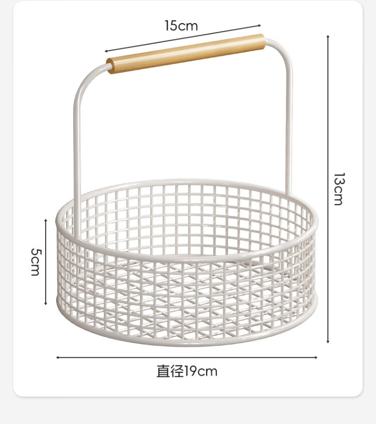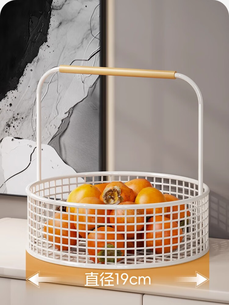 尔思家水果盘高档轻奢北欧简约手提水果篮现代果盘零食盘厨房用沥水篮 白色+原木把手