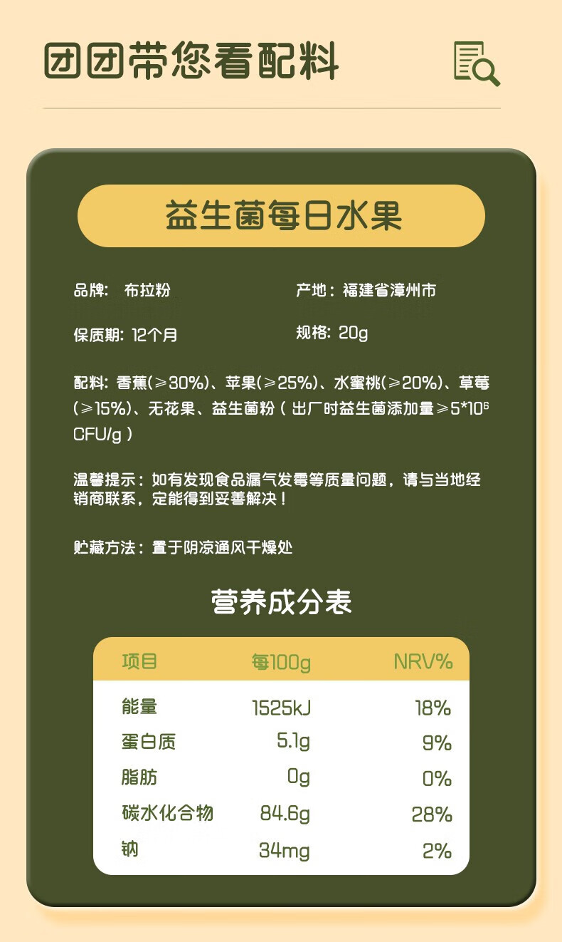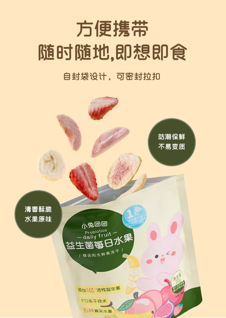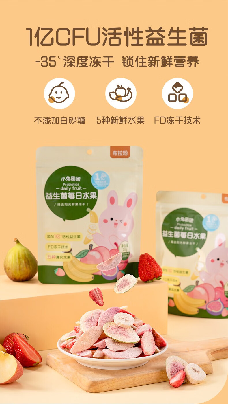 布拉粉小兔团团益生菌冻干水果脆片无添加白砂糖水果干儿童营养零食 3袋