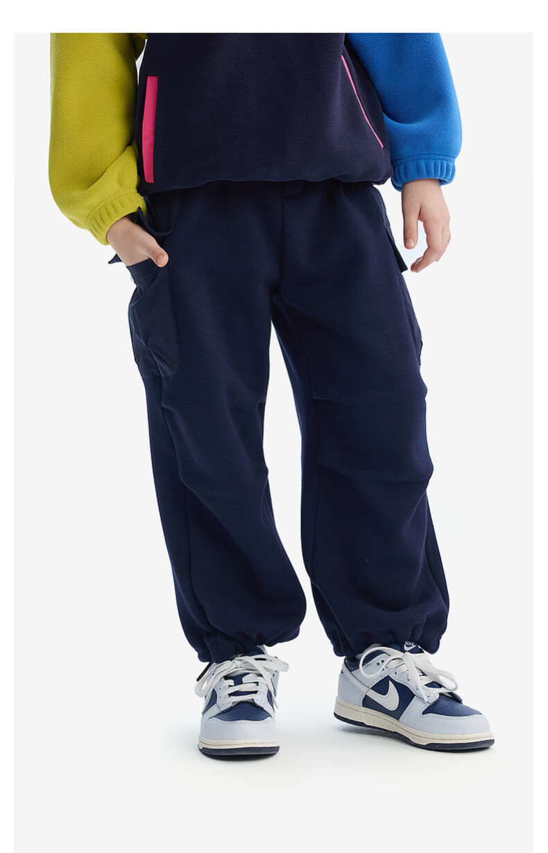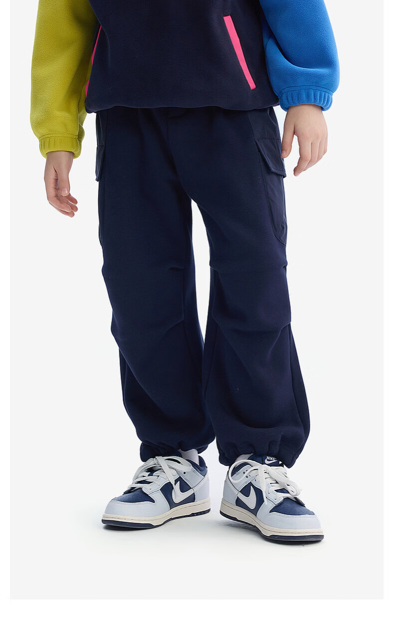 马骑顿(MQD)儿童针织裤冬款男童加绒保暖伞兵裤中大童户外风裤子 藏青 130