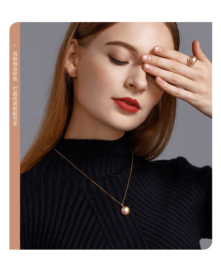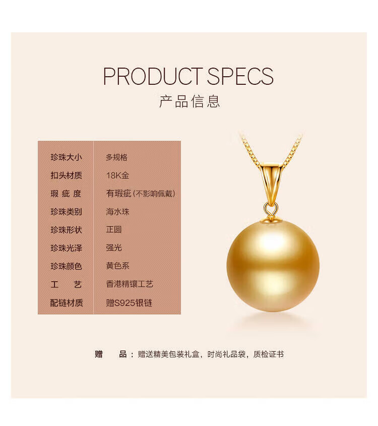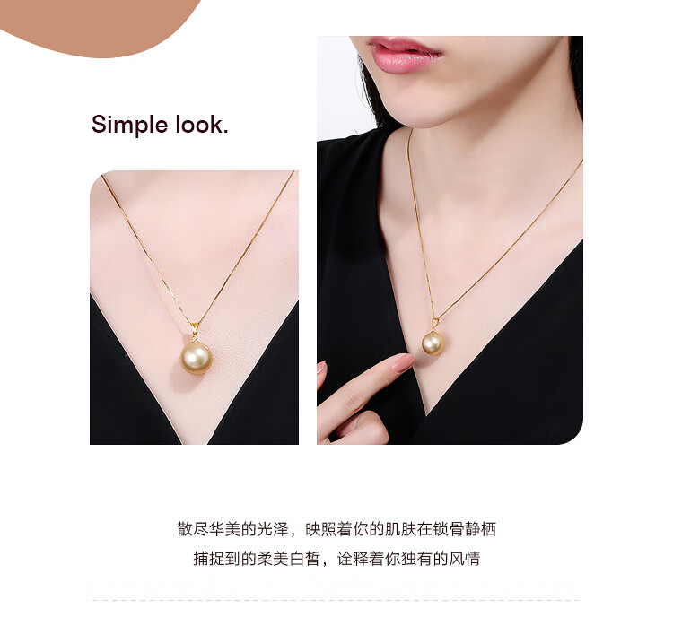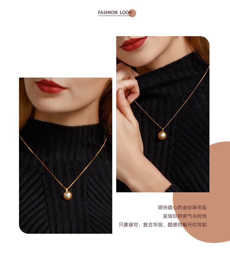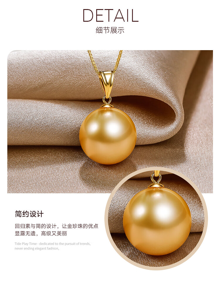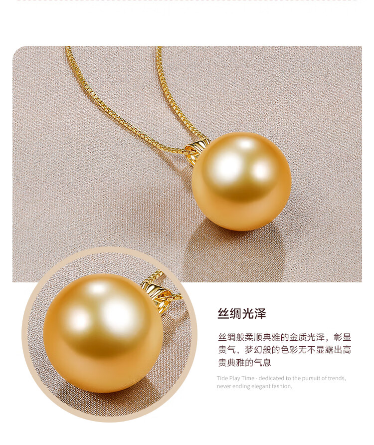 珍珠皇后优雅18K金南洋金珠吊坠 正圆强光海水珍珠项链女生日礼物送女朋友 【11-12mm】+s925银链
