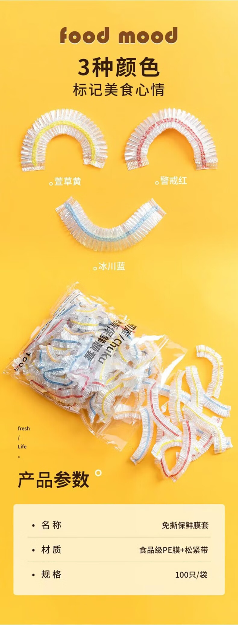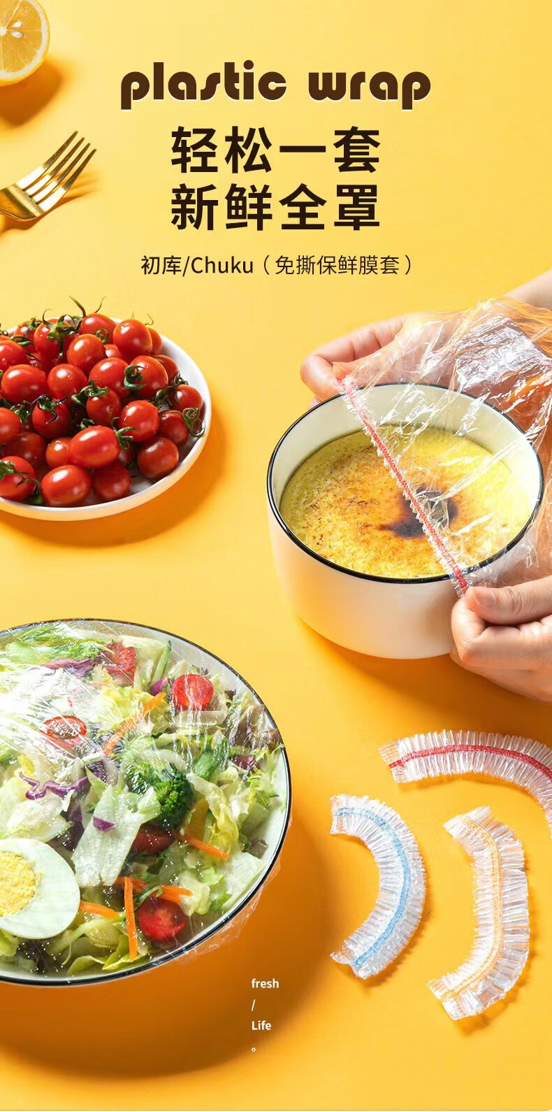 洋臣松紧口保保鮮套剩菜剩饭保鮮盖套一次性保鮮罩大小碗套通用保鮮罩 1提共500只【白色款】