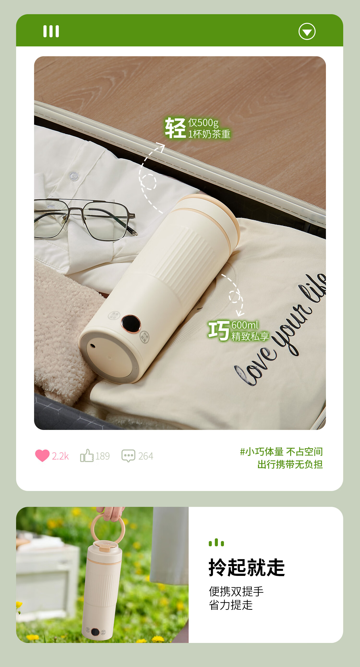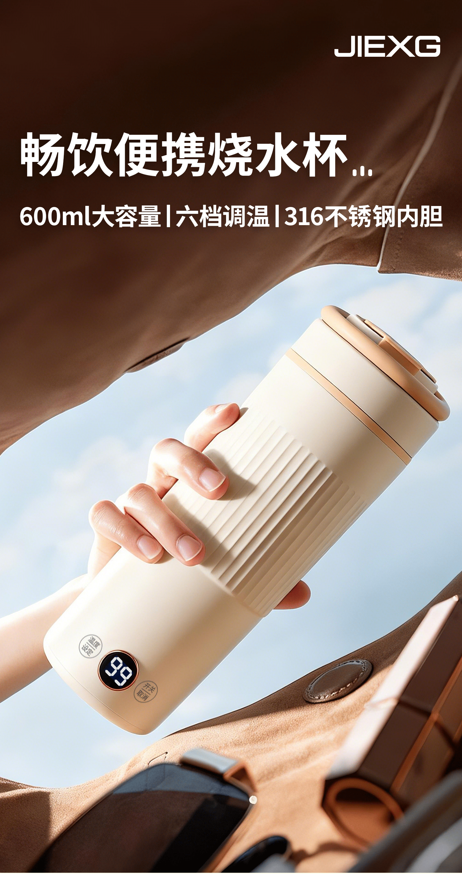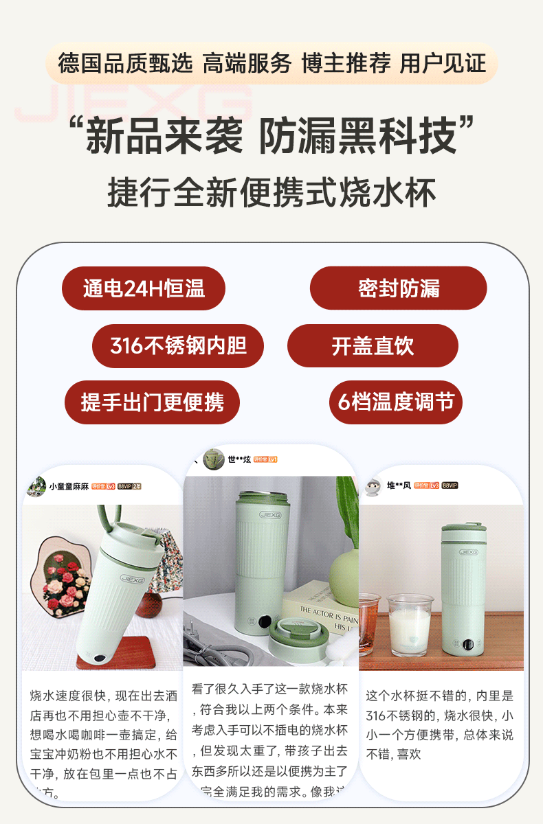 JIEXG德国便携式烧水杯 电热水杯 电热水壶 加热保温恒温水壶 600ml迷你旅行出差 0.6L 【沫茶绿】升级六档【恒温】316不锈钢内胆
