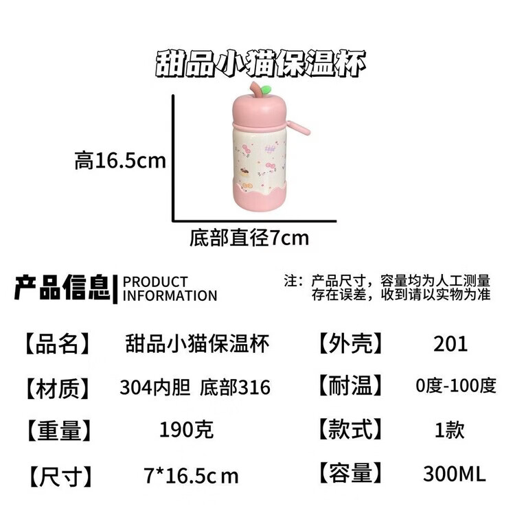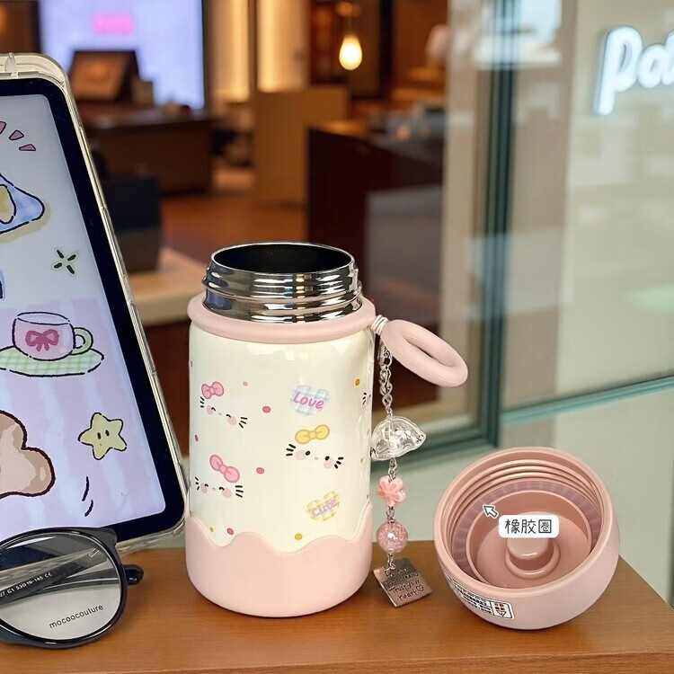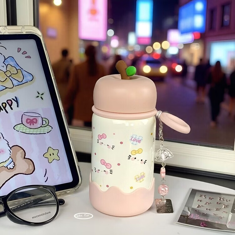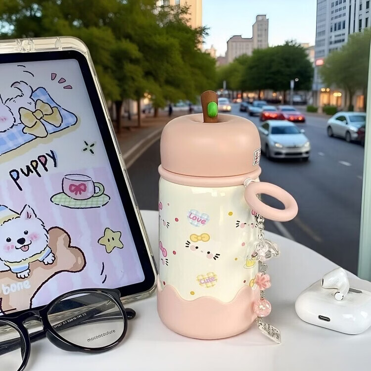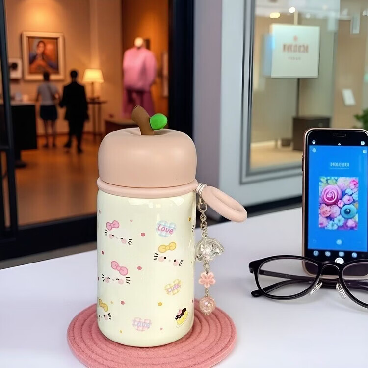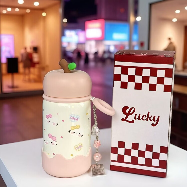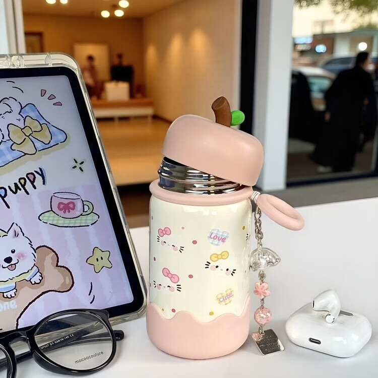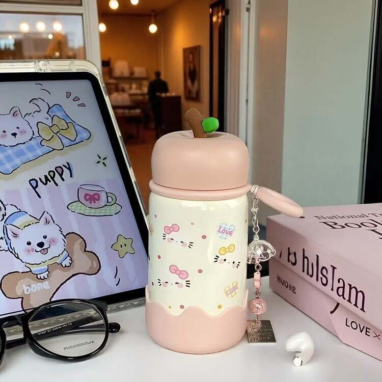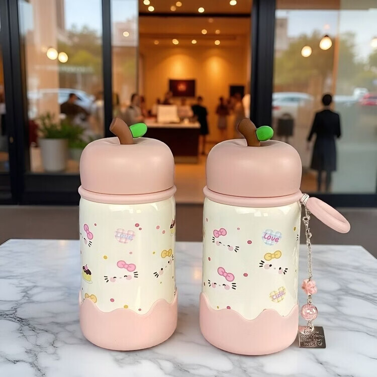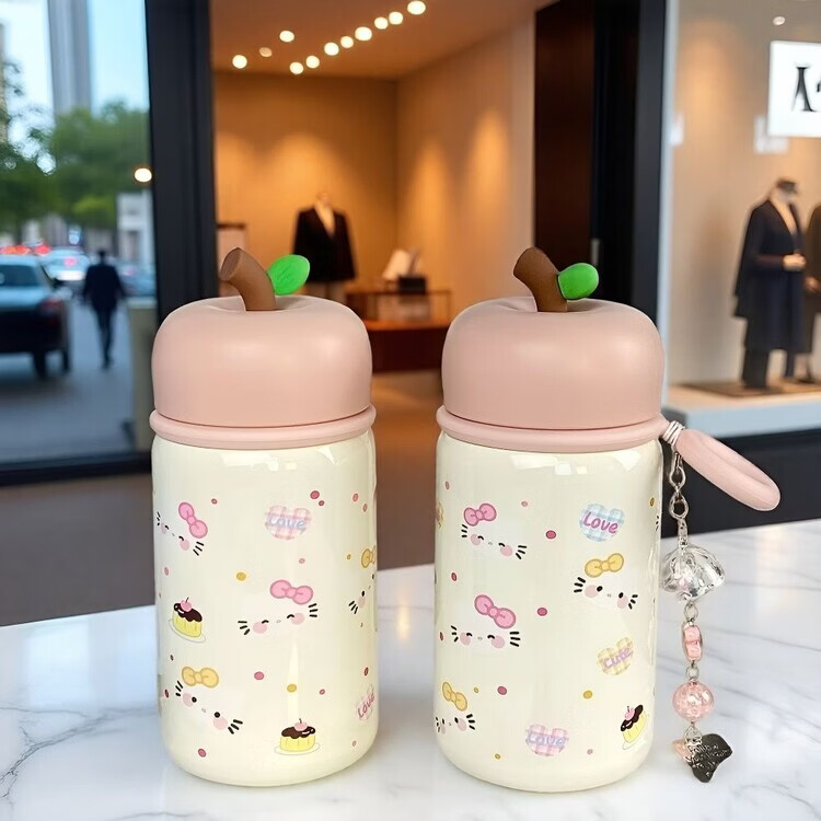 kt猫苹果保温杯 高颜值316不锈钢可爱卡通水杯女生小巧学生便携女 kt猫保温杯+【杯垫+吊坠】 300ml【彩盒包装】