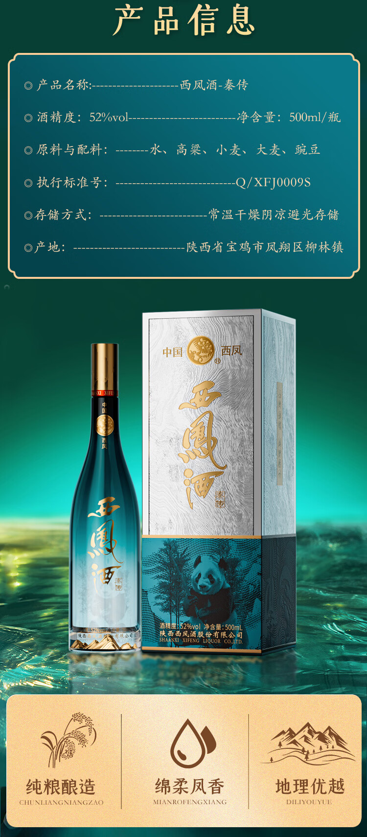 西凤52度凤香型 纯粮白酒送礼佳品 官方正品白酒礼盒节日送礼送长辈 52度 500mL 1瓶 山河系列秦传 单瓶装