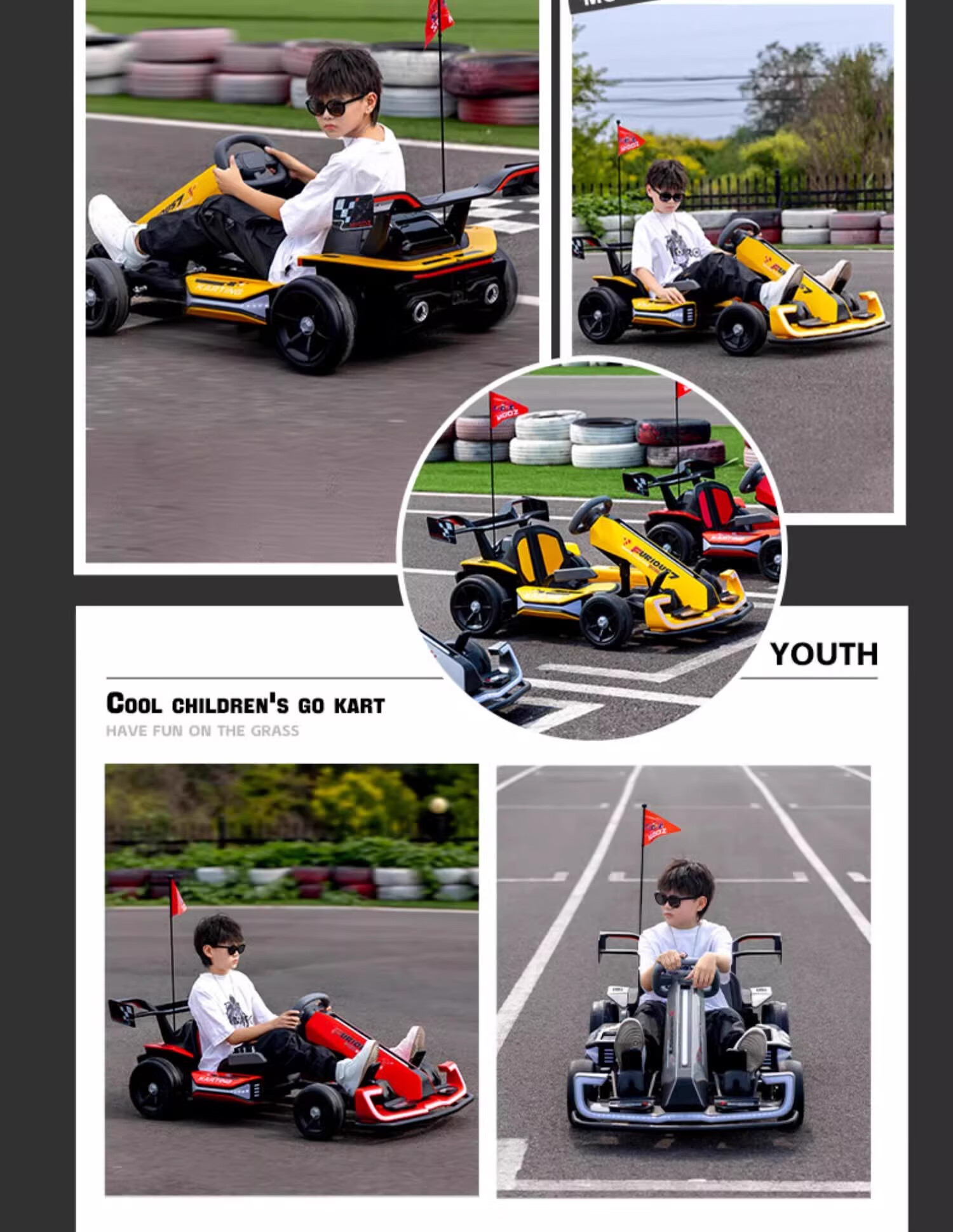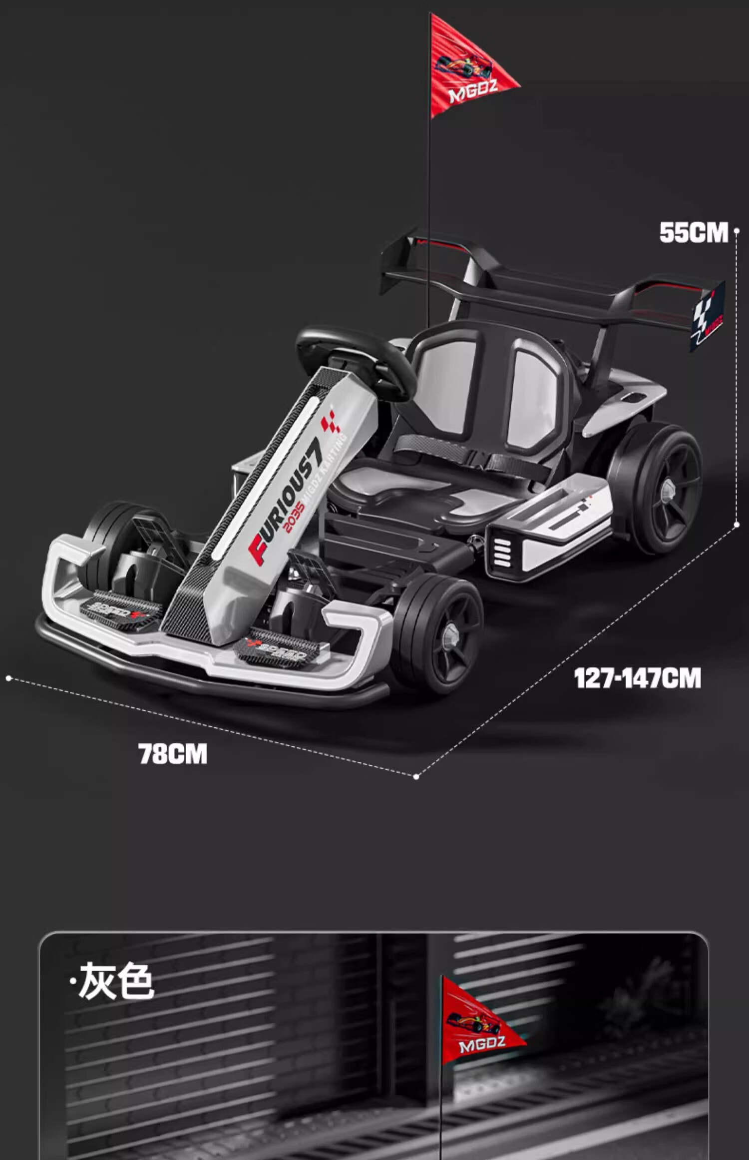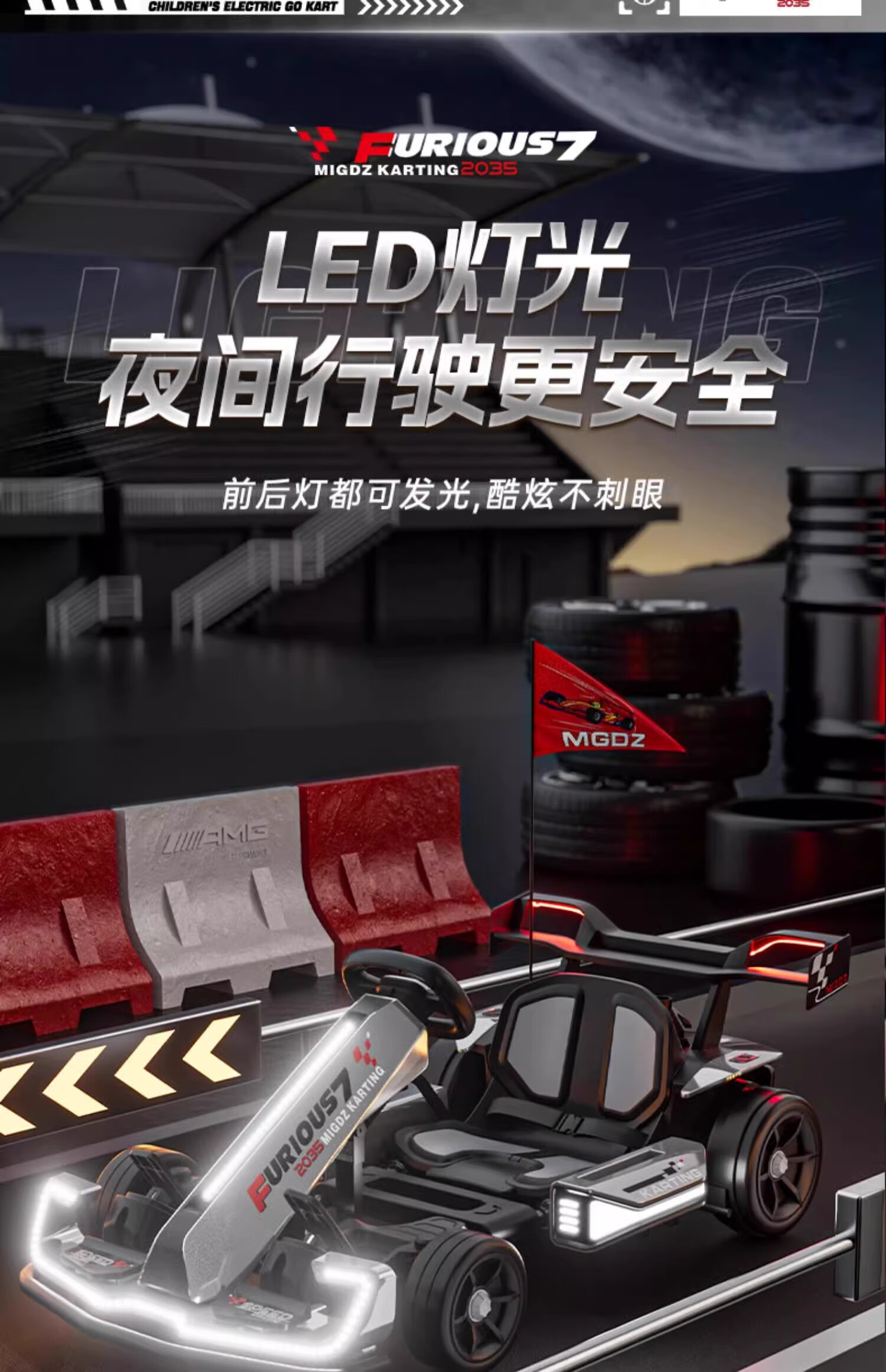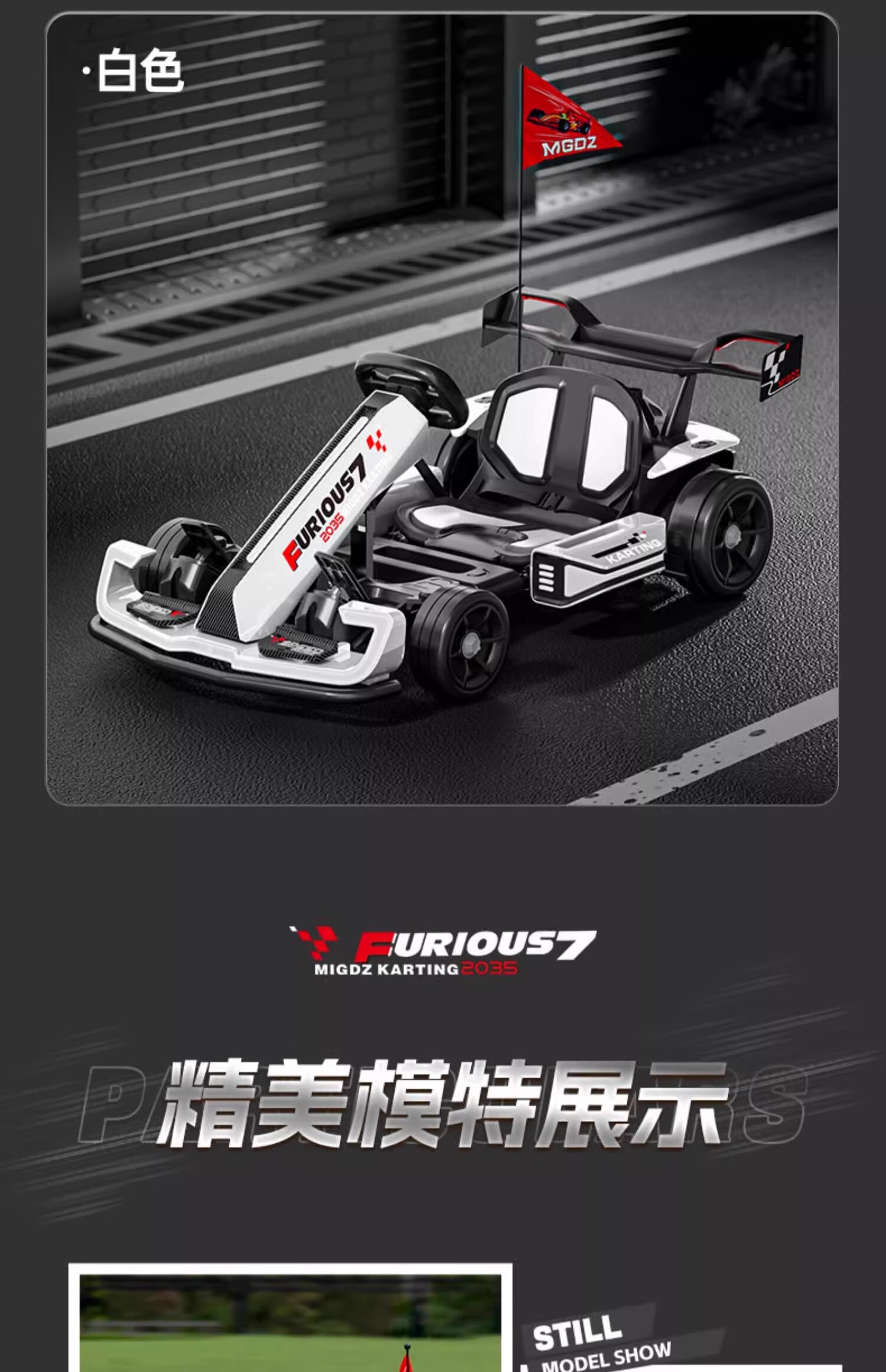 孩儿乖卡丁车男女宝宝成人可坐高端儿童卡丁车漂移赛车四轮电动车卡丁车 C款白色12V+低速+可伸缩+遥控 双驱-护具头盔