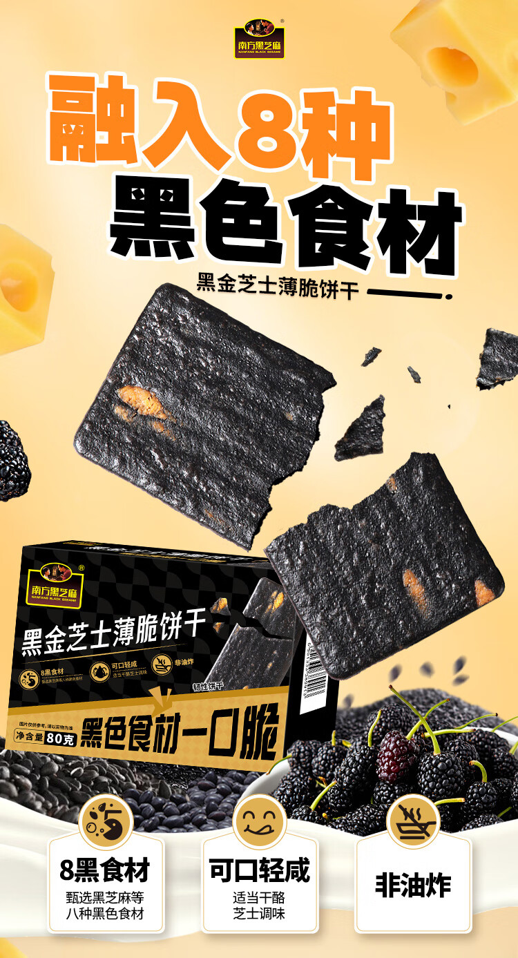 南方黑芝麻黑金芝士薄脆饼干脆片休闲食品零食办公室下午茶 元气零食大礼包 1068g*1袋