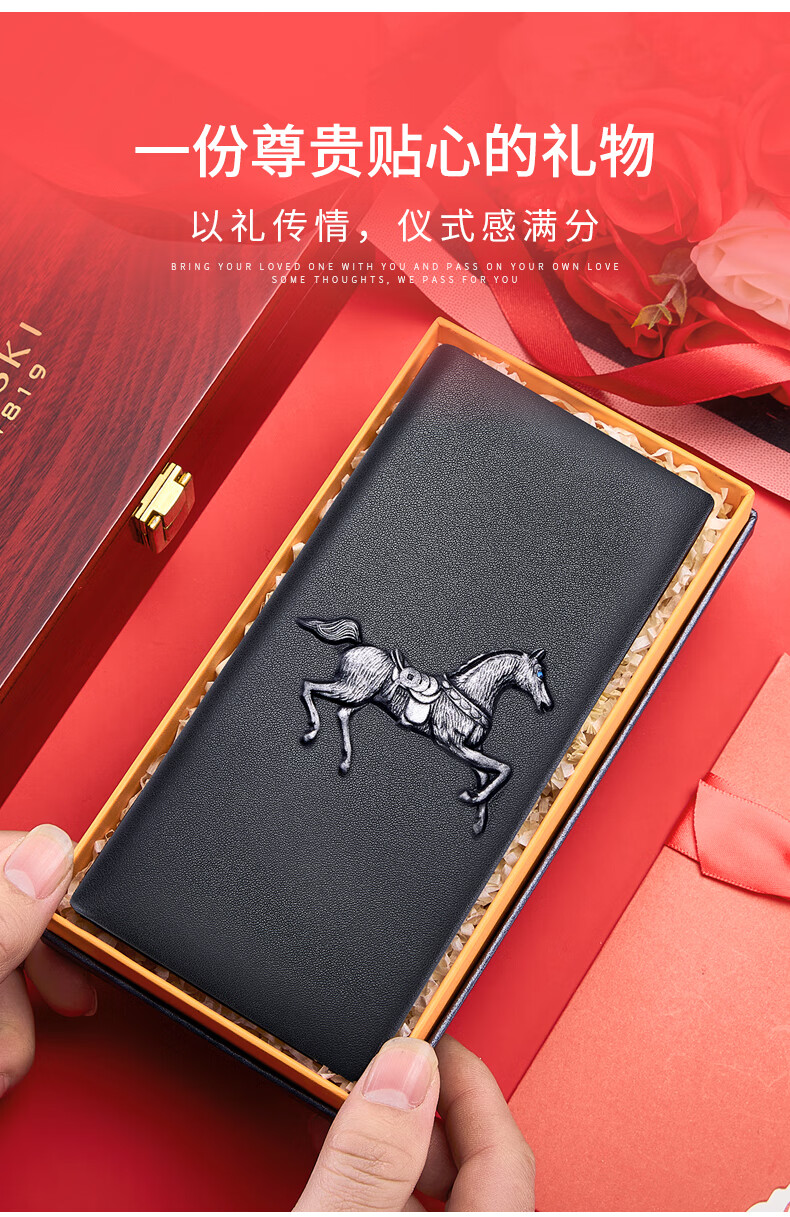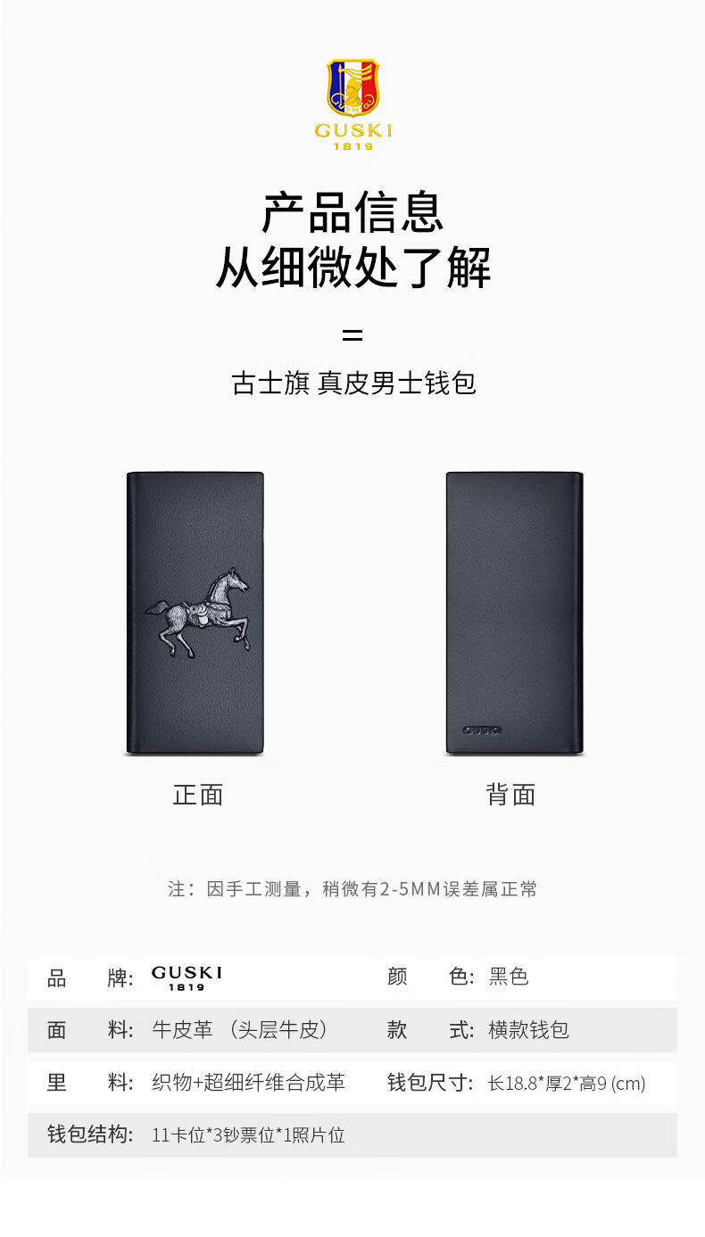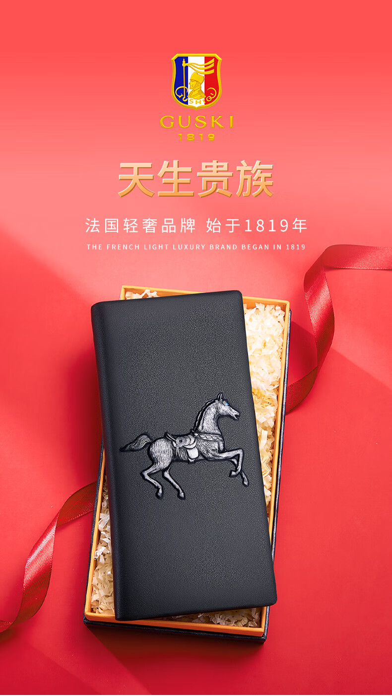古士旗(GUSKI)法国品牌男士钱包男长款皮夹牛皮钱夹高档卡包新年生日情人节礼物 【专柜礼盒】马到成功860011-3 头层牛皮/百搭长款
