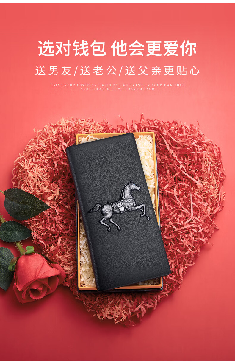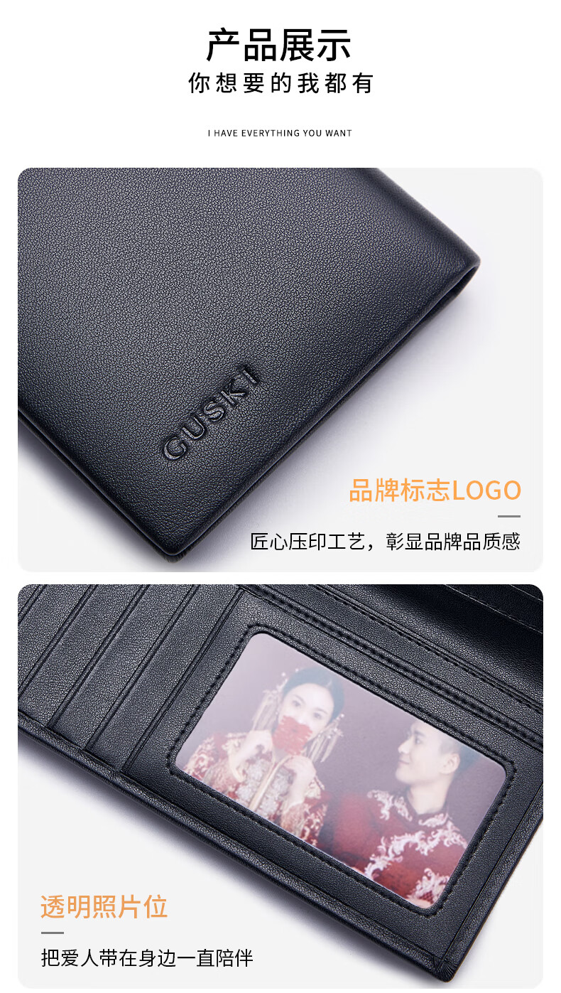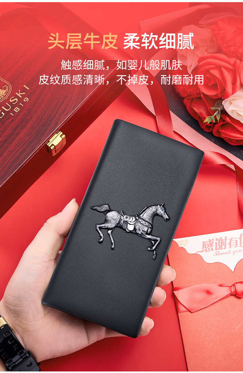 古士旗(GUSKI)法国品牌男士钱包男长款皮夹牛皮钱夹高档卡包新年生日情人节礼物 【专柜礼盒】马到成功860011-3 头层牛皮/百搭长款