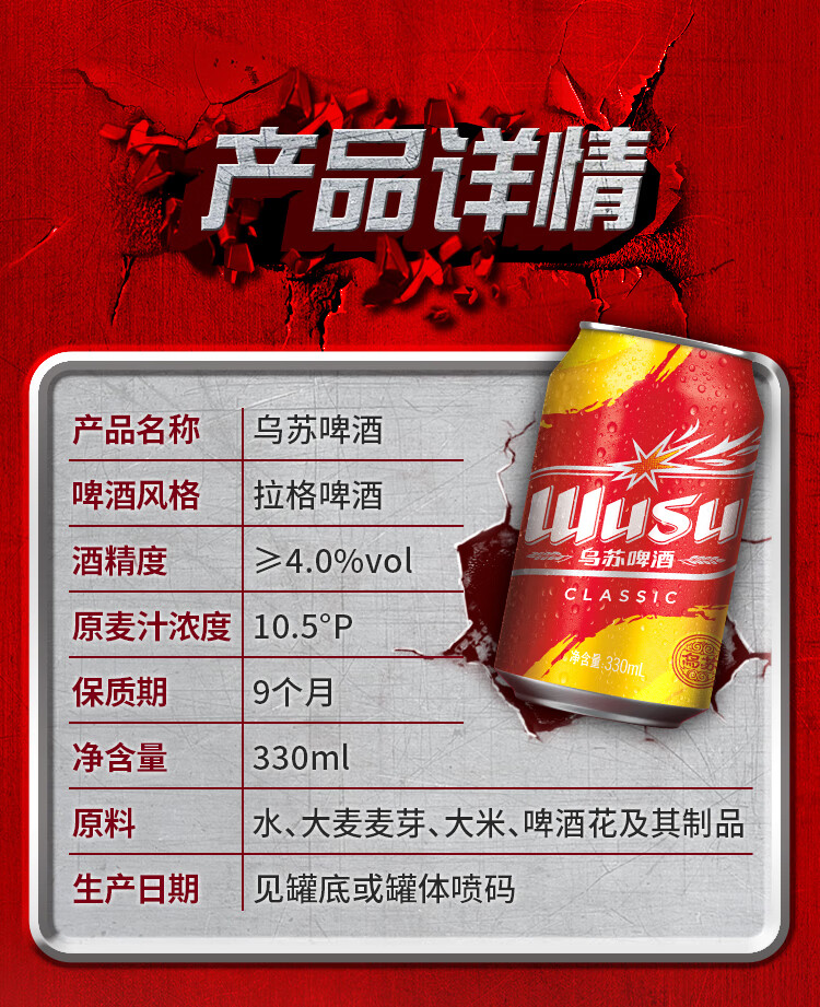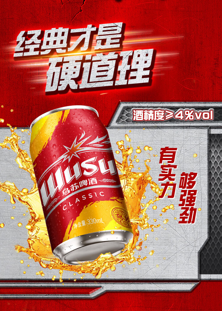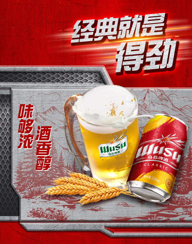 乌苏啤酒(wusu)乌苏啤酒京东自营经典330ml*6罐 塑膜装京东自营