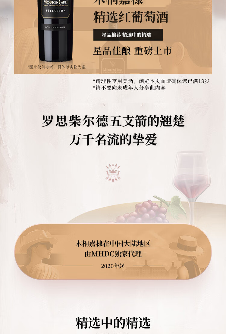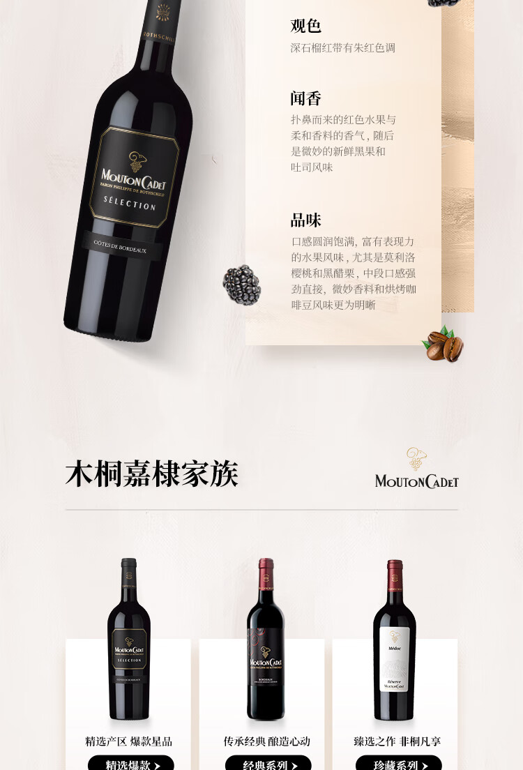 木桐嘉棣(MOUTON CADET)【热门商品】 法国 精选波尔多丘红葡萄酒 750ml*6瓶 整箱