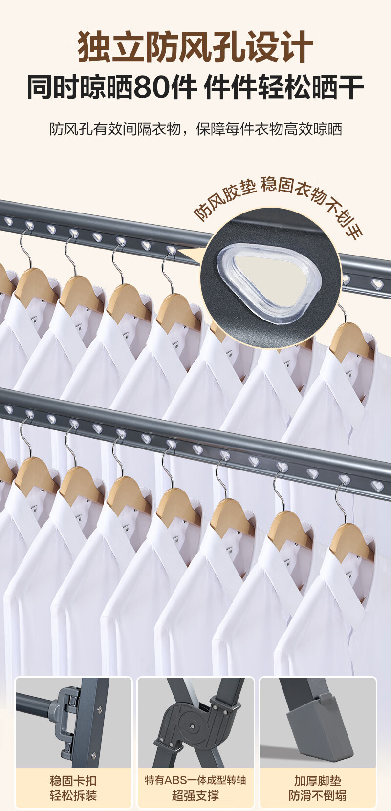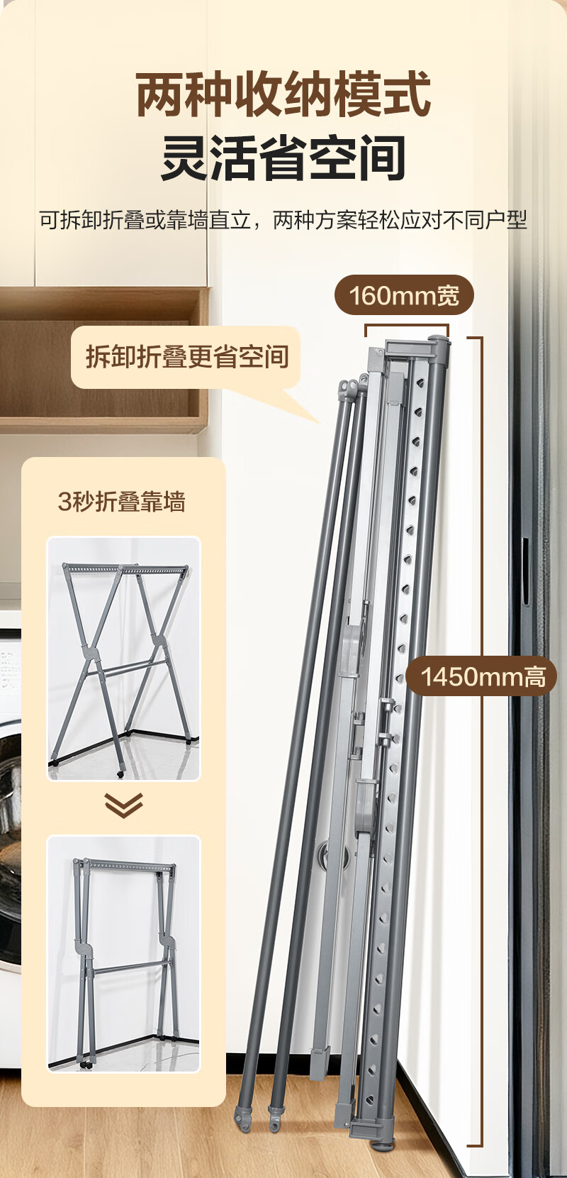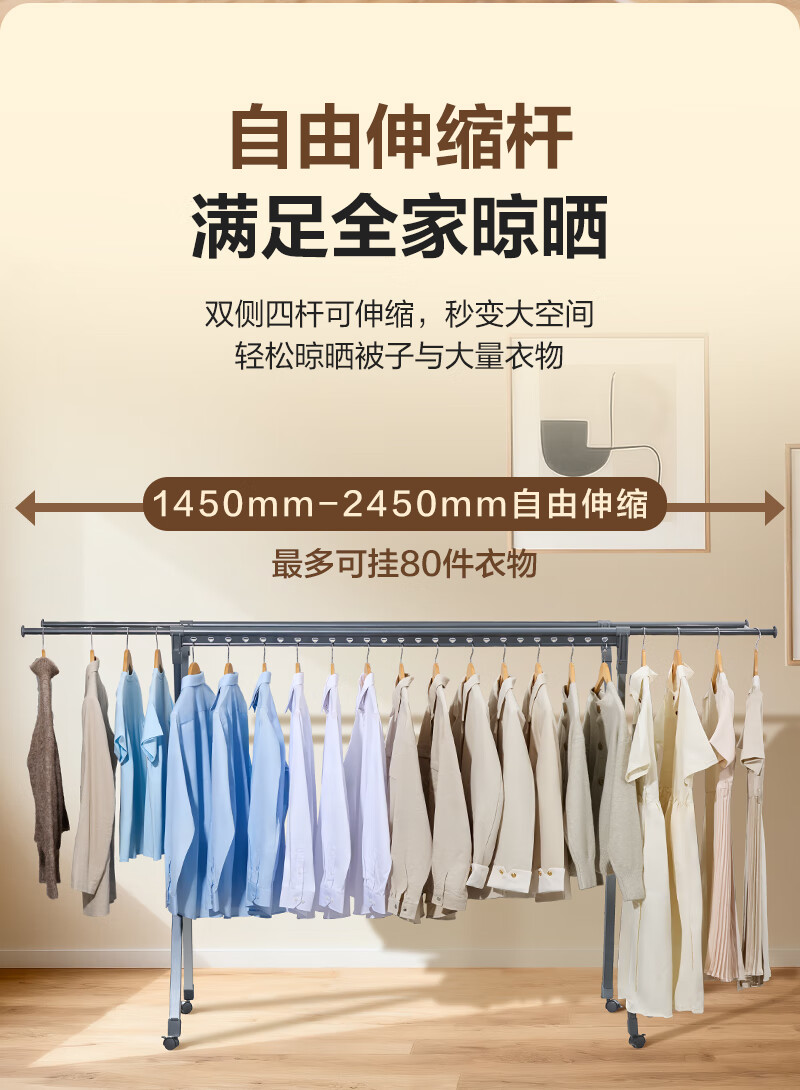 1号会员店(One's Member)落地晾衣架 铝合金可伸缩折叠 阳台晒被子挂衣架 加厚大容量