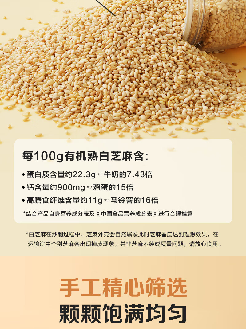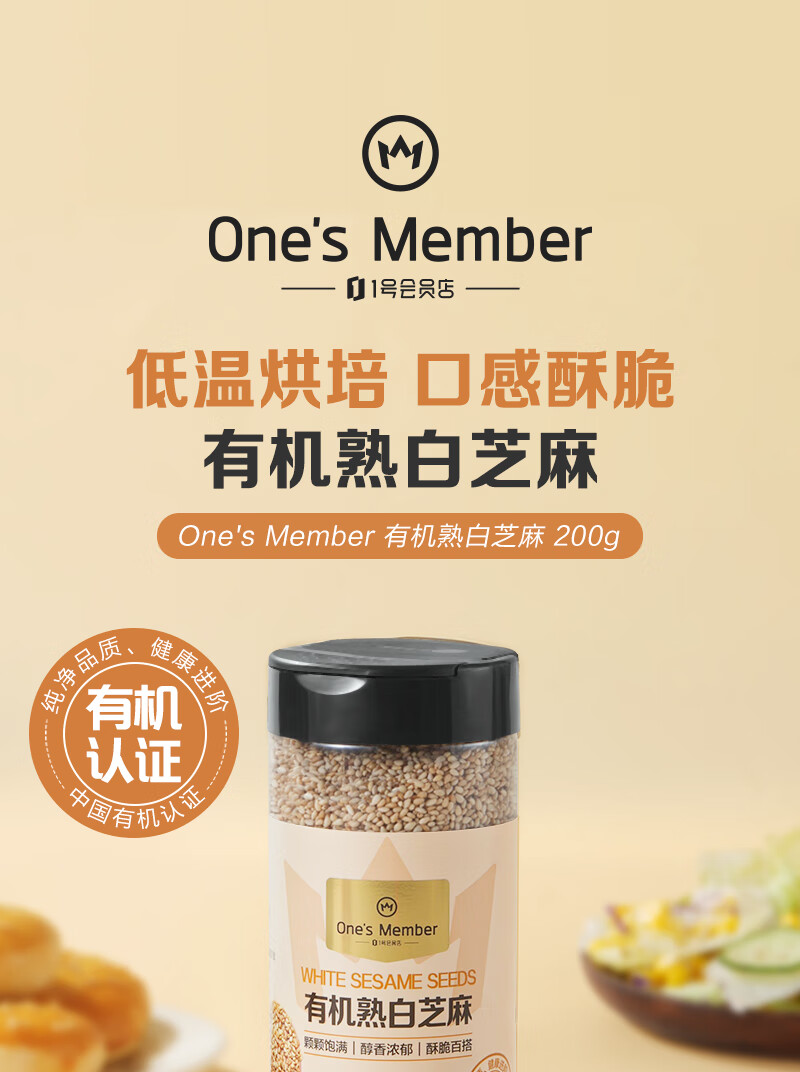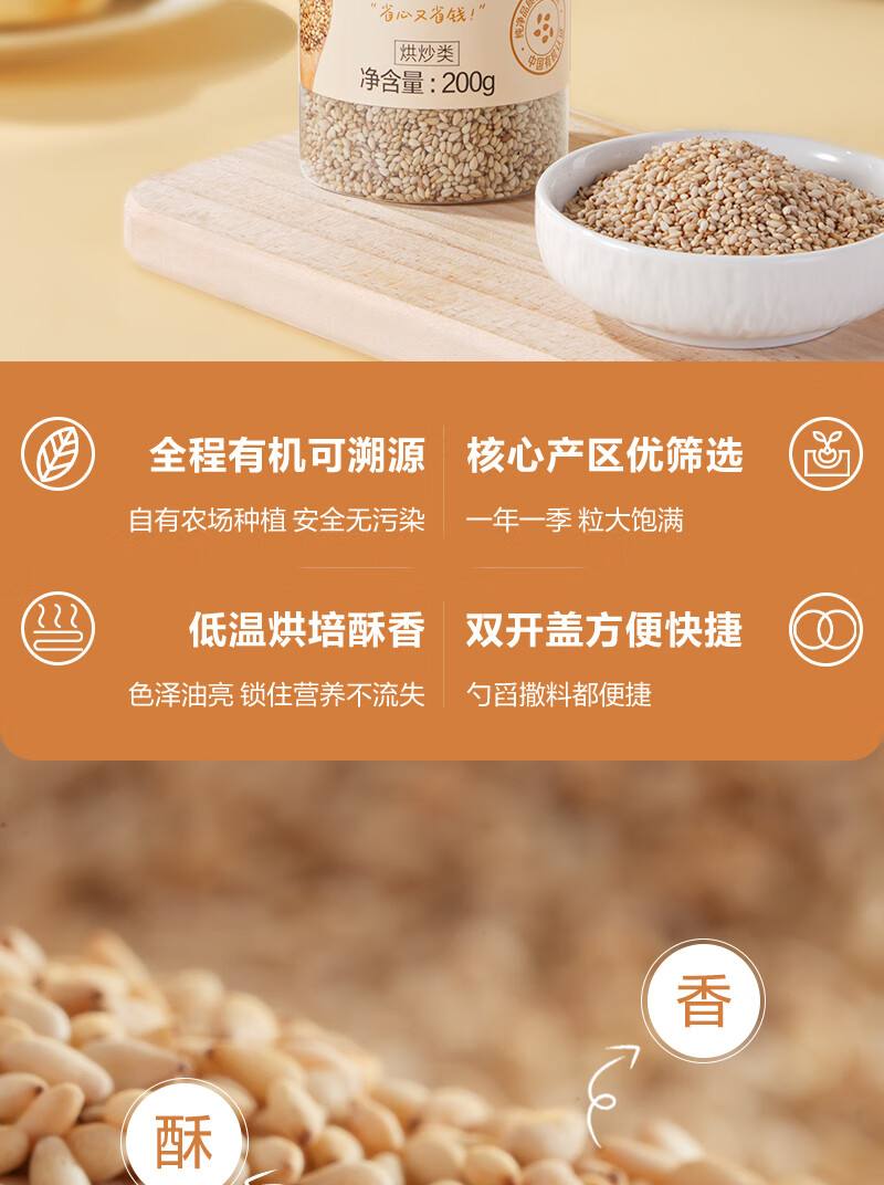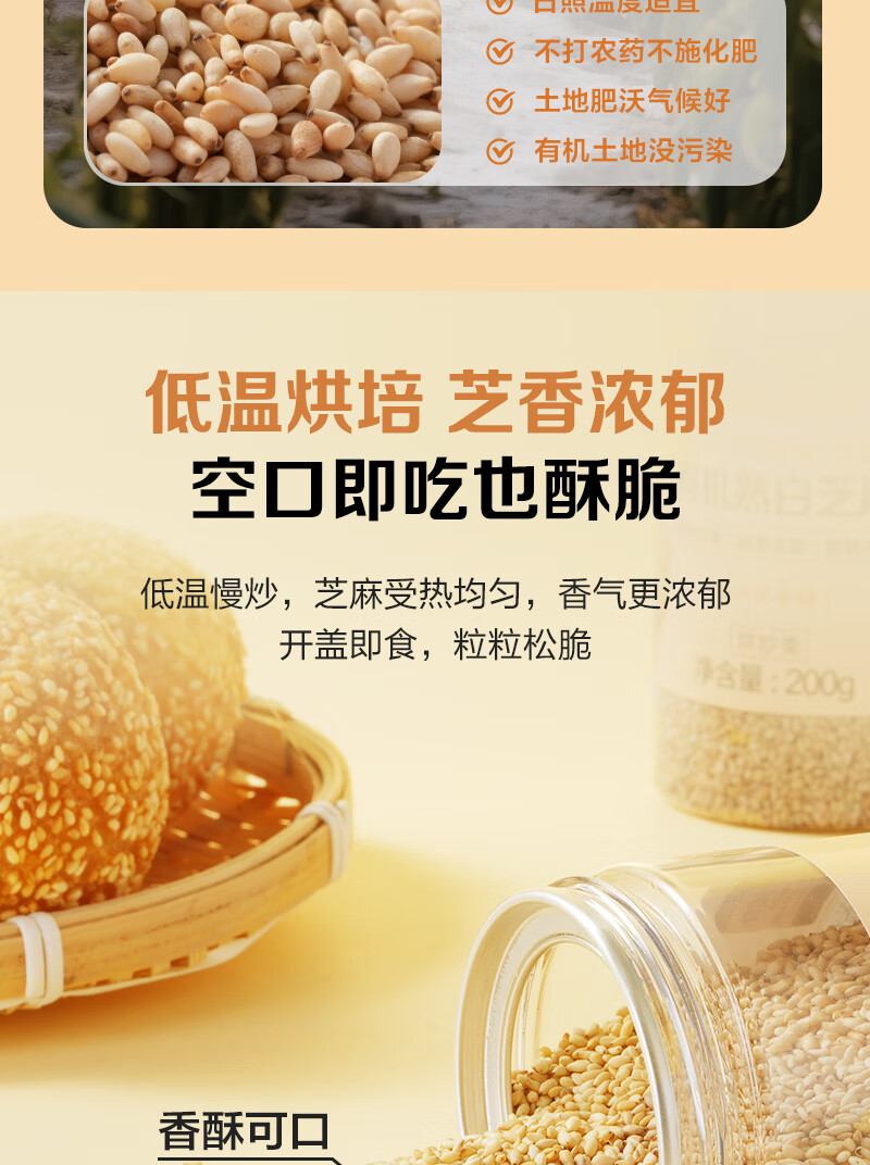 1号会员店 有机熟白芝麻 200g 低温烘焙 无添加 免洗即食 山东有机白芝麻