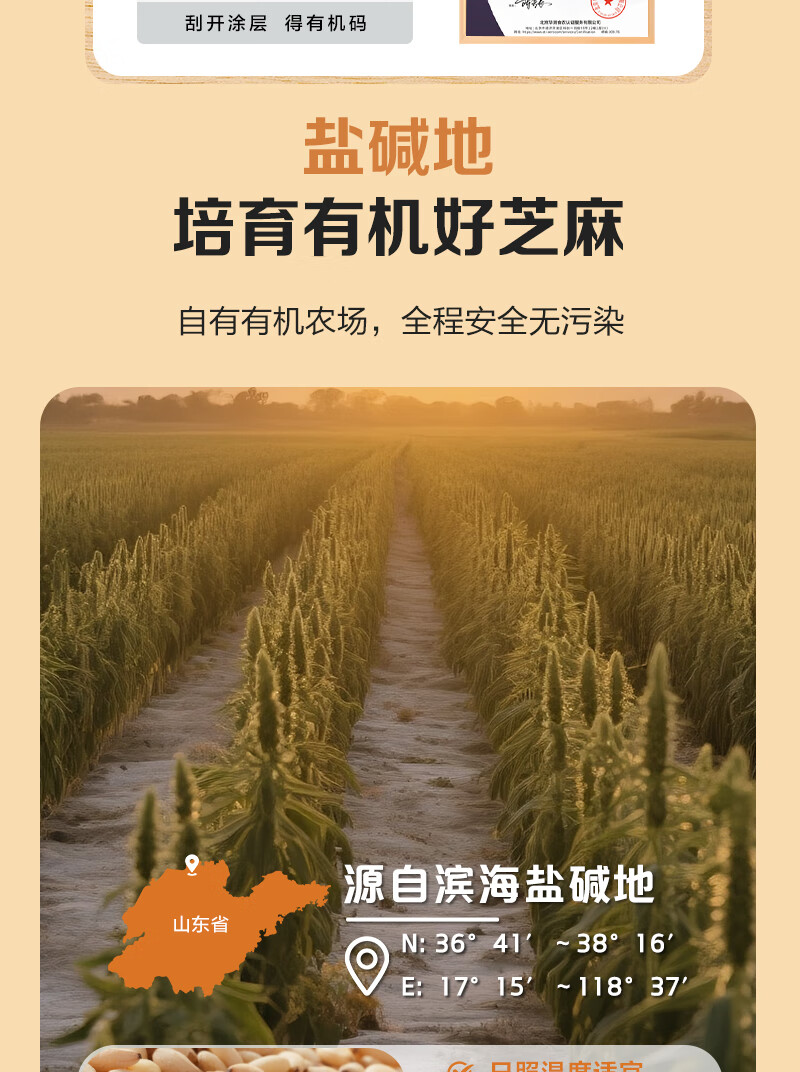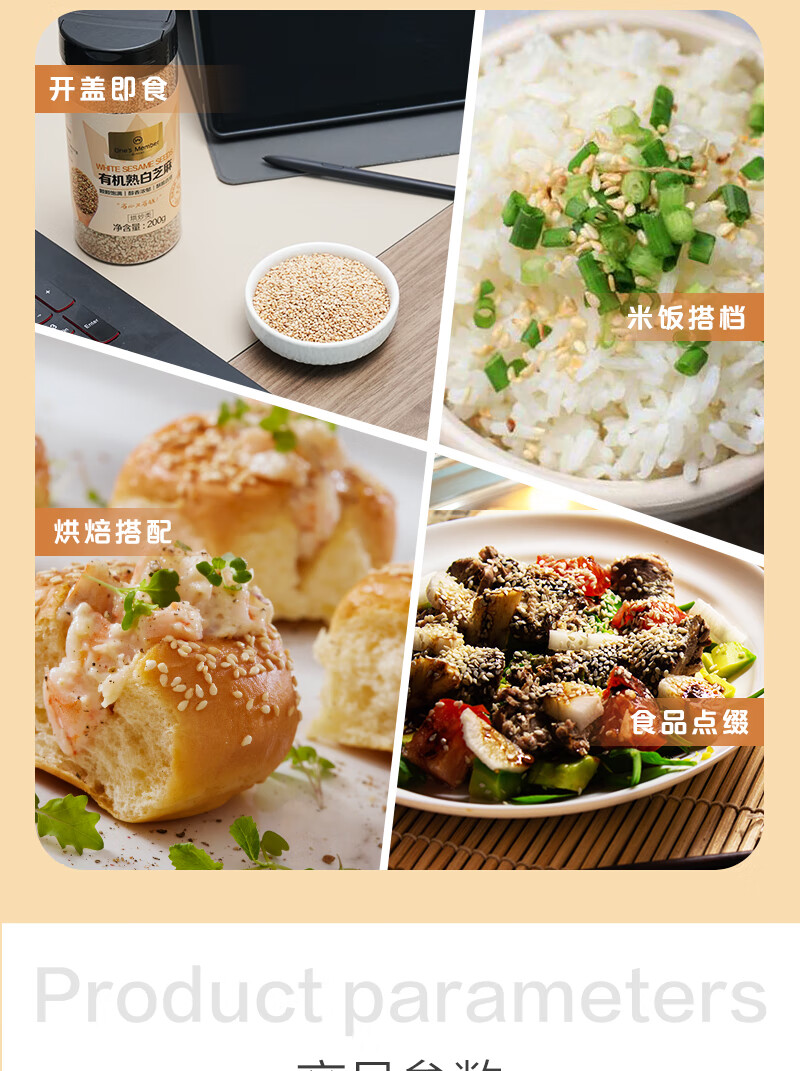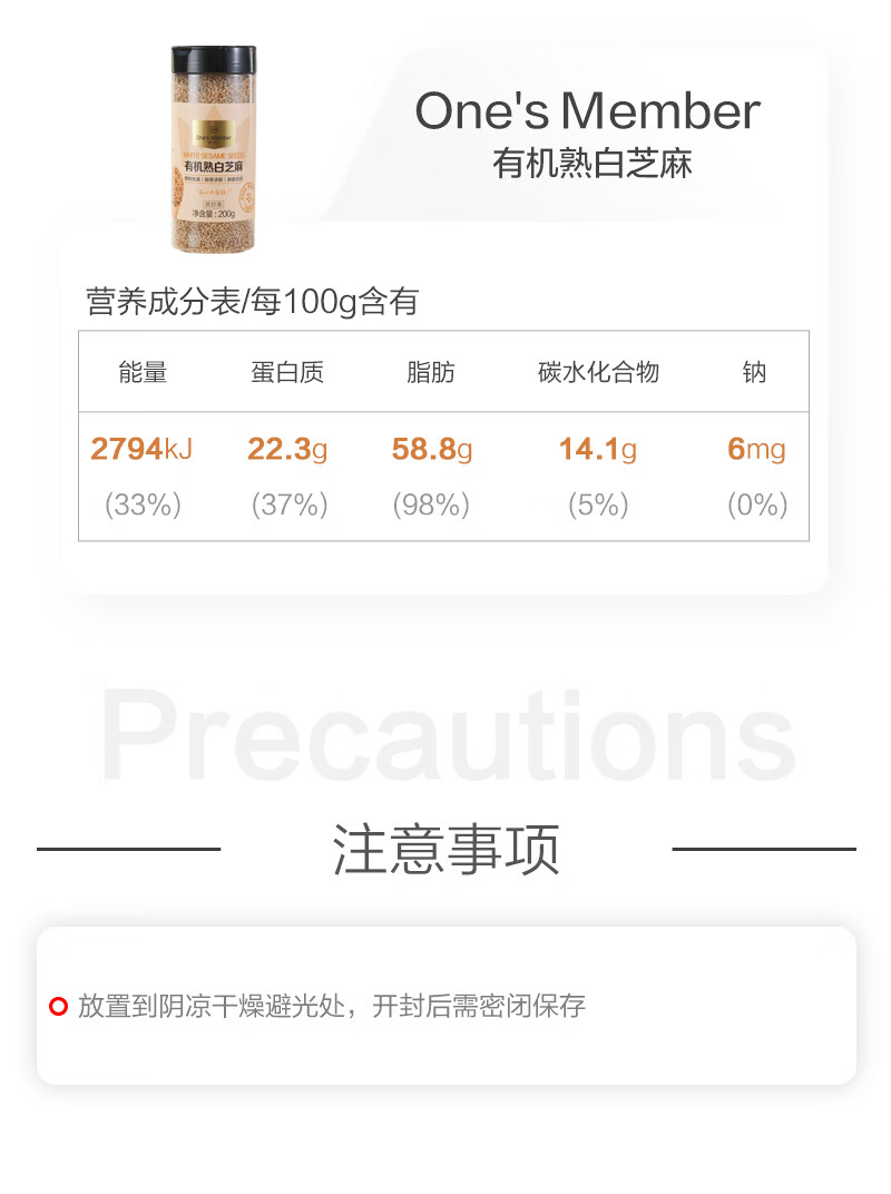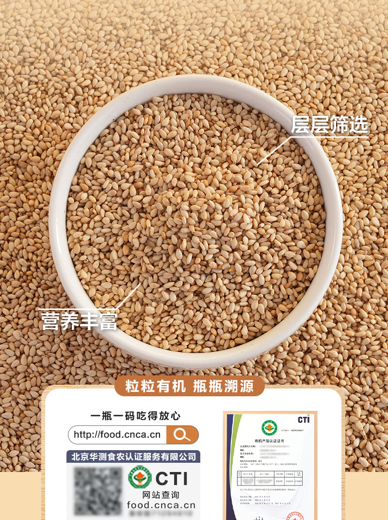 1号会员店 有机熟白芝麻 200g 低温烘焙 无添加 免洗即食 山东有机白芝麻