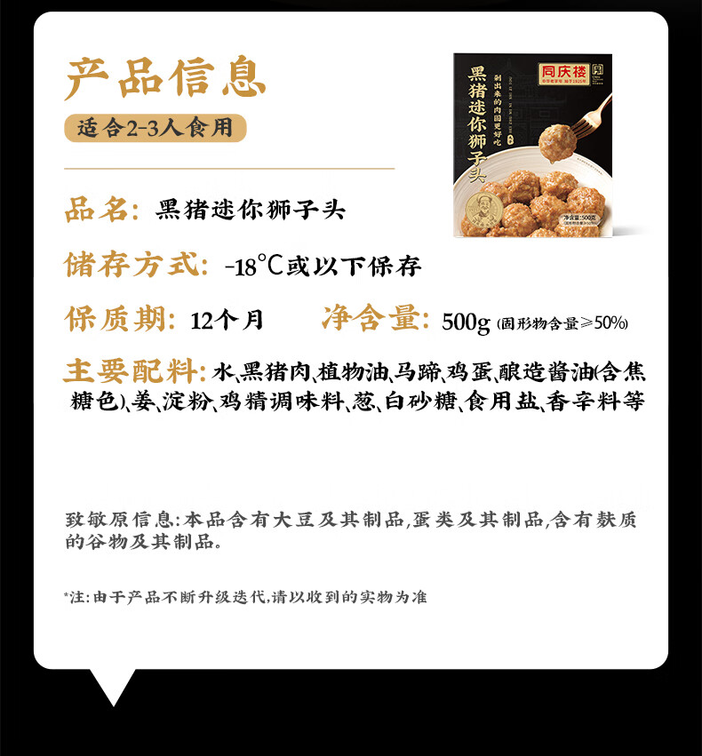 同庆楼黑猪肉红烧迷你狮子头 1斤装 年货节 预制菜半成品 加热即食