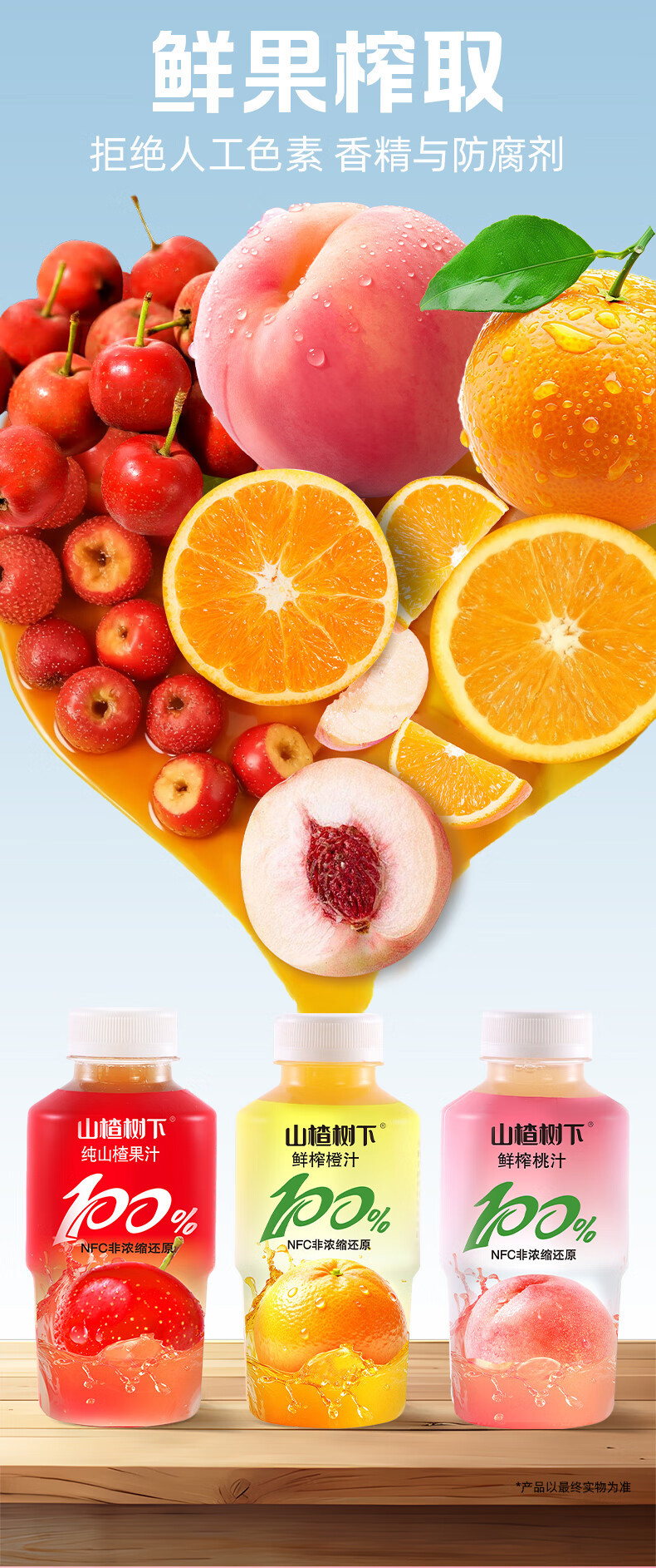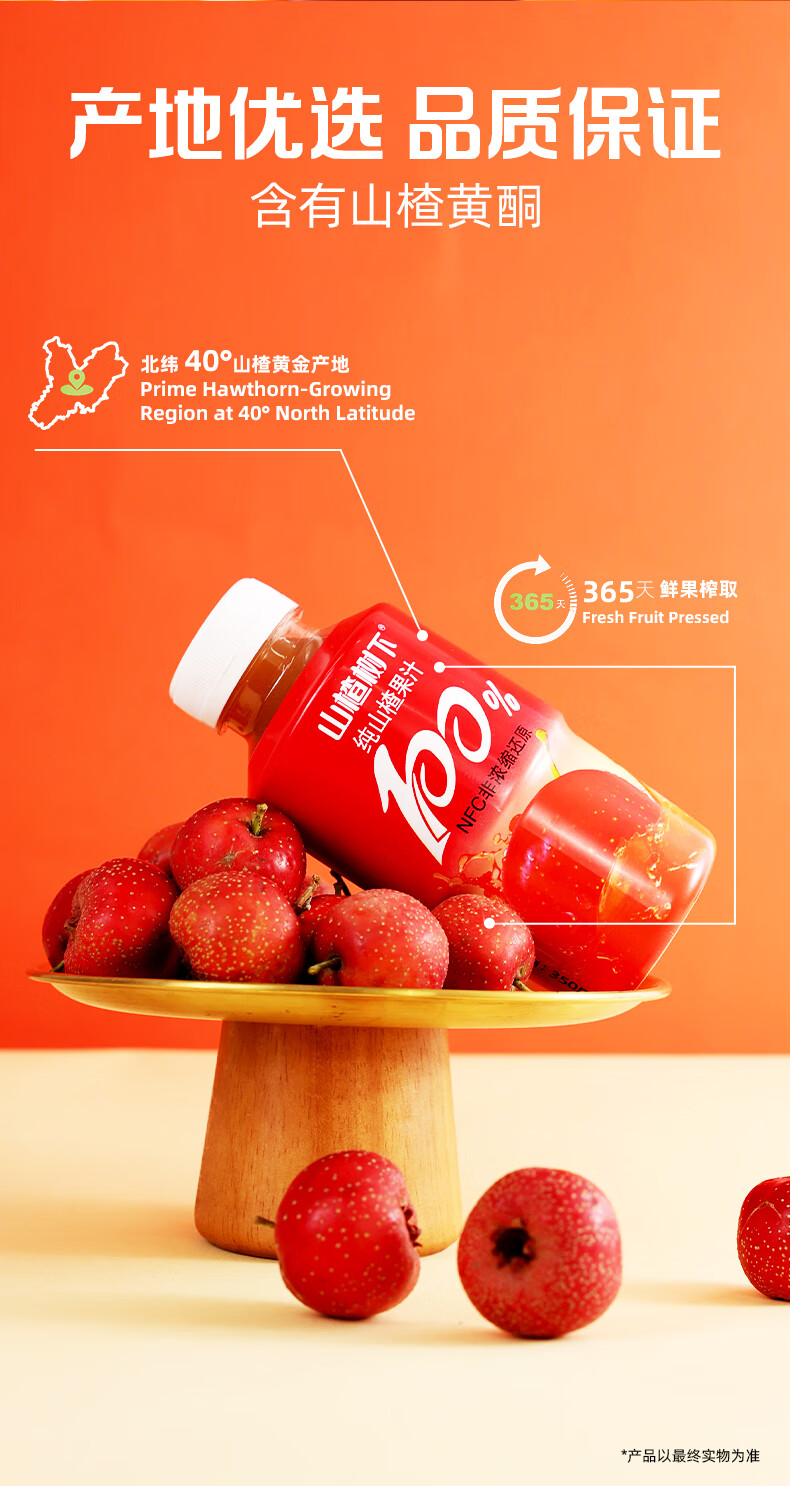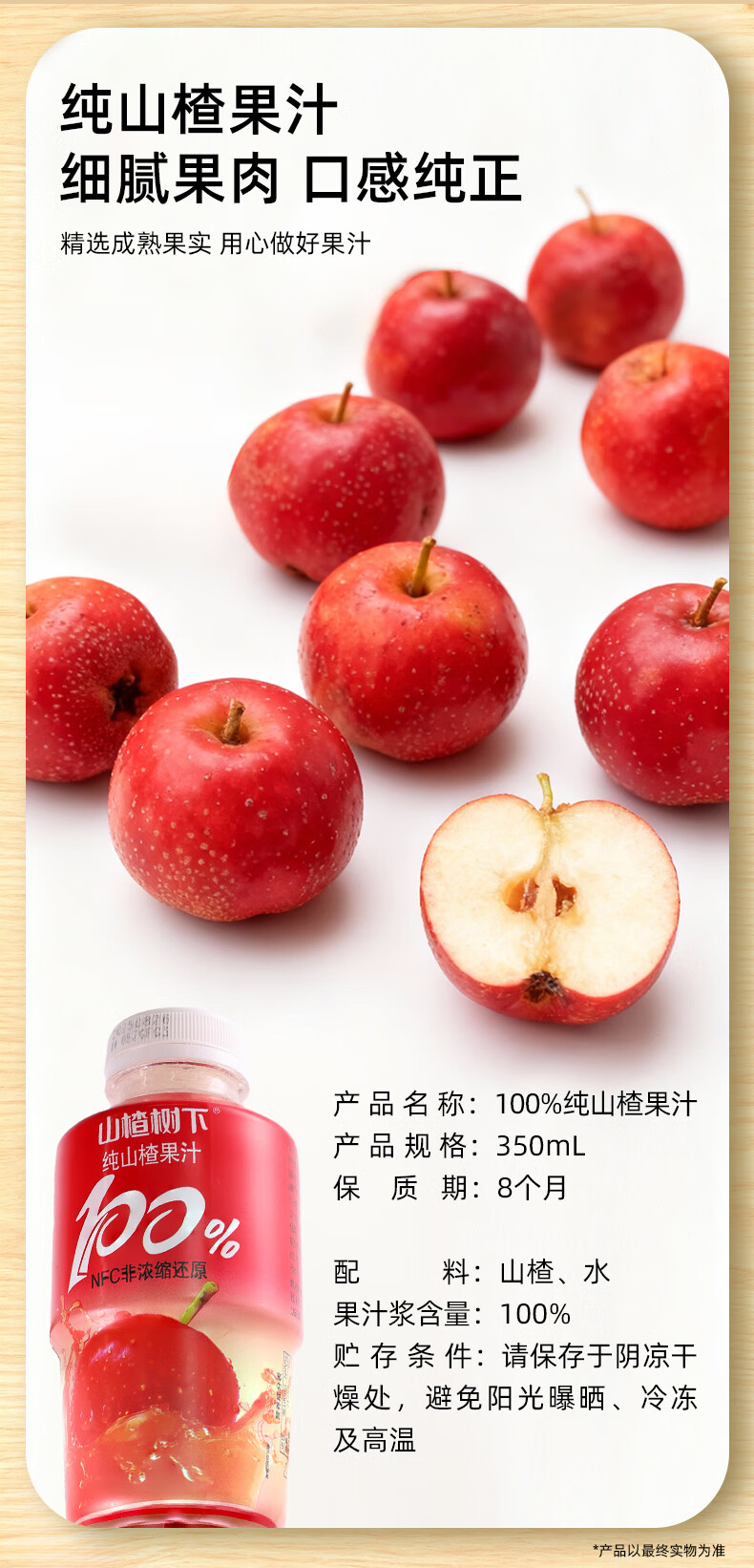 冠芳山楂树下百分百山楂汁350ml*15瓶果汁饮料新年年货超市送礼整箱装