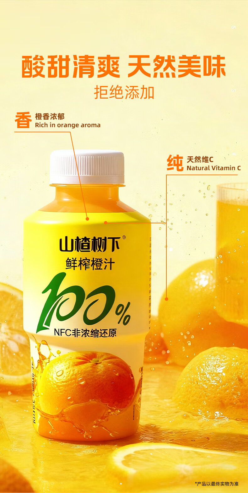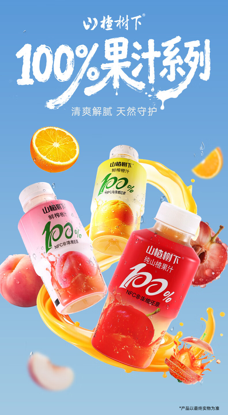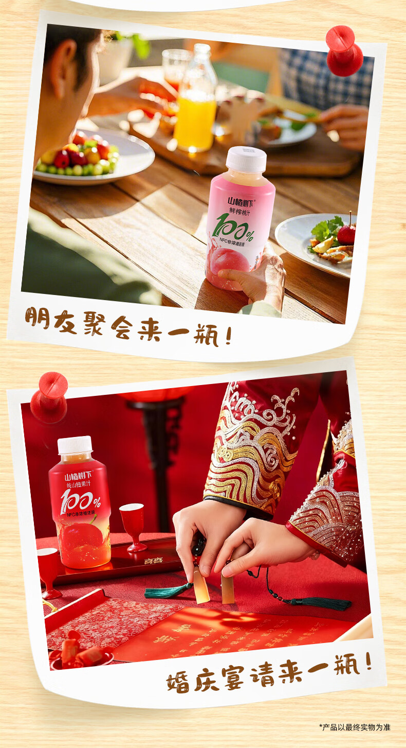 冠芳山楂树下百分百山楂汁350ml*15瓶果汁饮料新年年货超市送礼整箱装