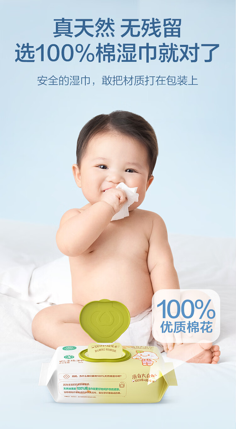 全棉时代 婴儿湿巾新生儿湿纸巾100%纯棉屁屁湿纸巾实惠装80抽*8包