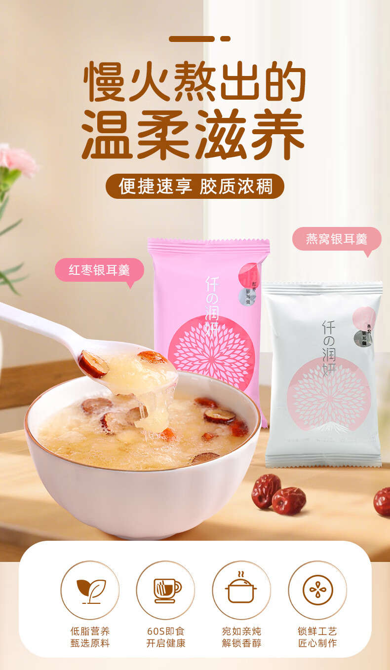 阿一波 红枣冻干银耳羹 免煮鲜炖冲泡即食燕窝银耳羹代餐速食方便食品 15克红枣银耳羹6包+15克燕窝银耳羹6包