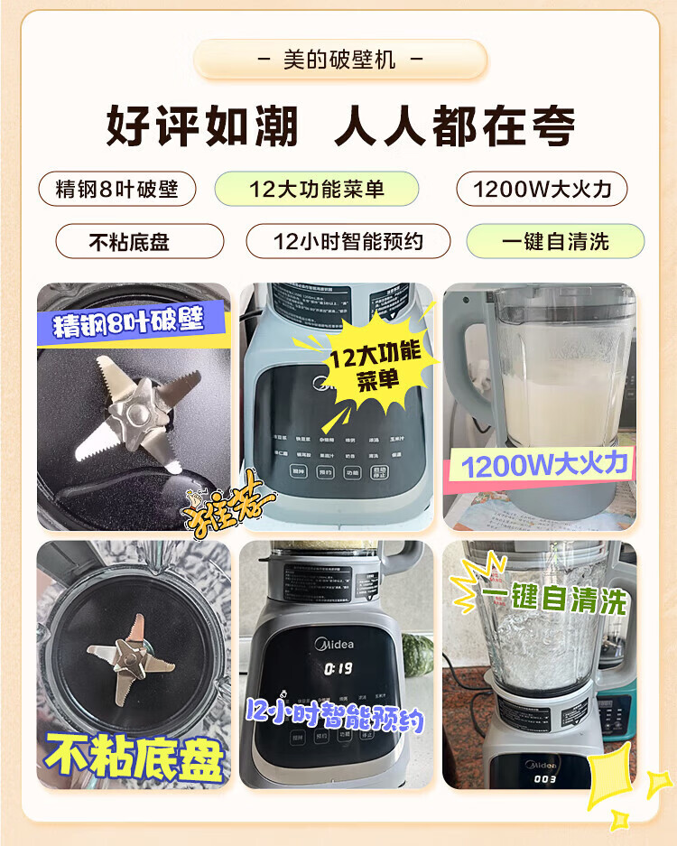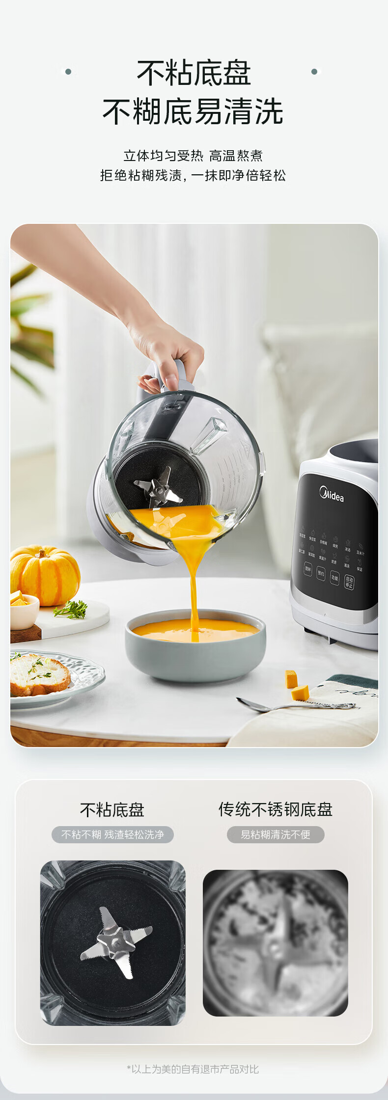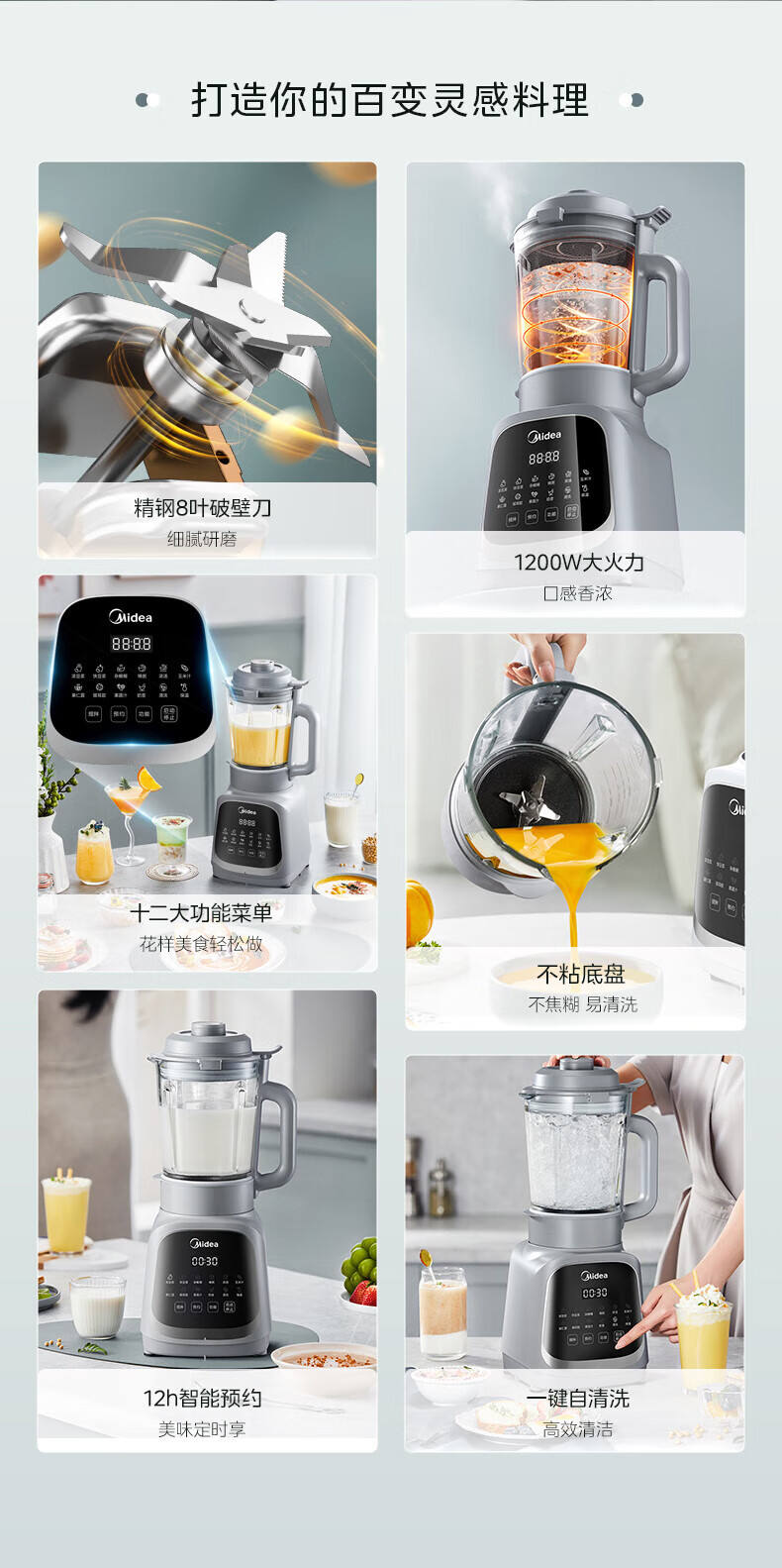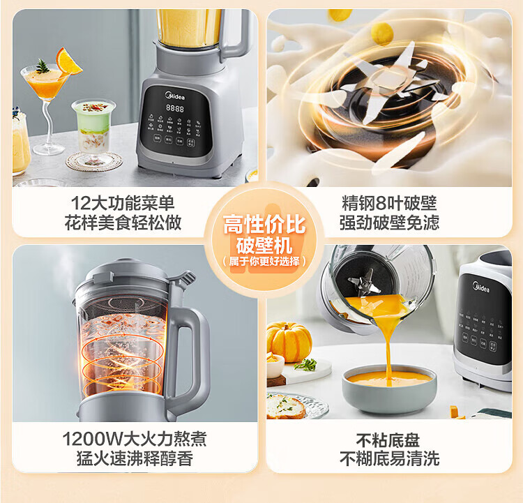 美的(Midea)破壁机 1.75L大容量家用早餐豆浆机 全自动免滤免煮料理机 多功能智能榨汁机 大功率快煮 【加厚隔音杯体】MJ-PB40T42