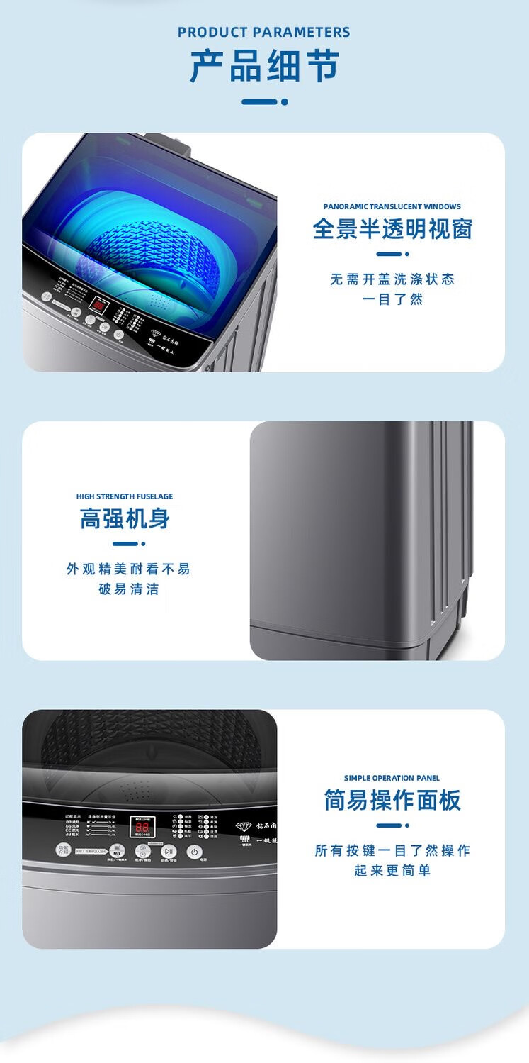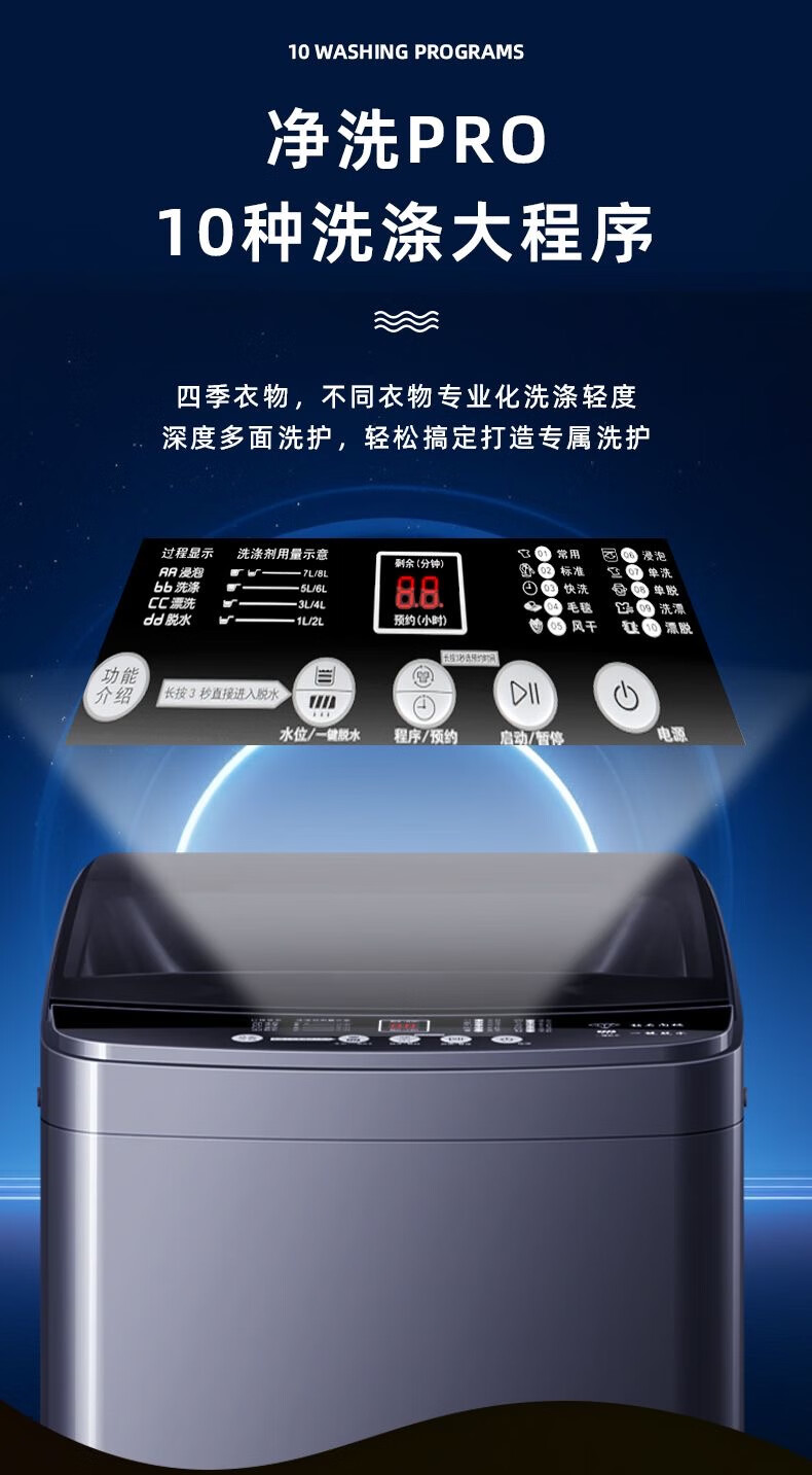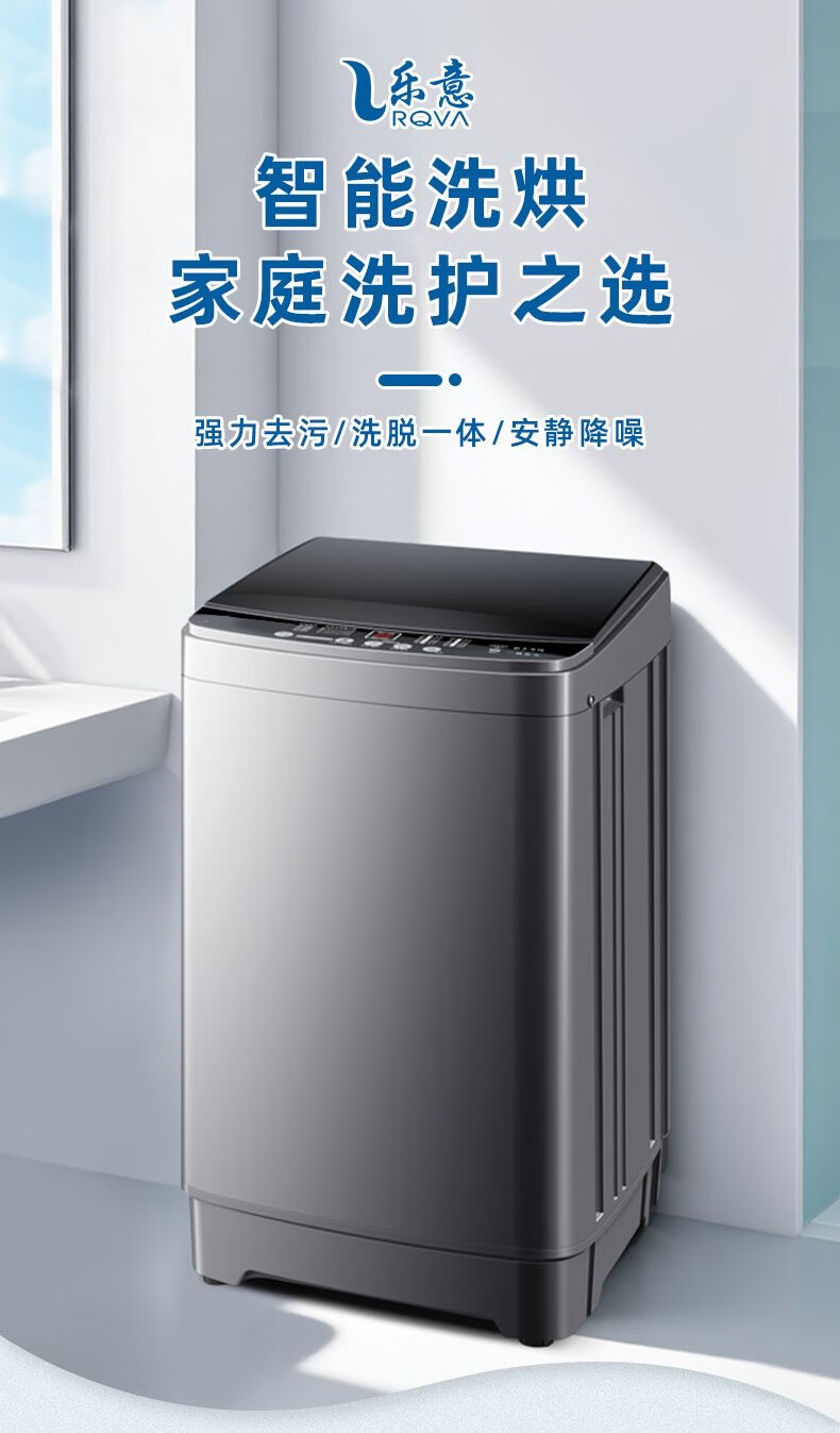 乐意RQVA【国补15%】洗衣机全自动家用波轮迷你小型出租屋宿舍大容量洗烘一体脱水 9KG【豪华玻璃】智能蓝光风干+立体去污 波轮