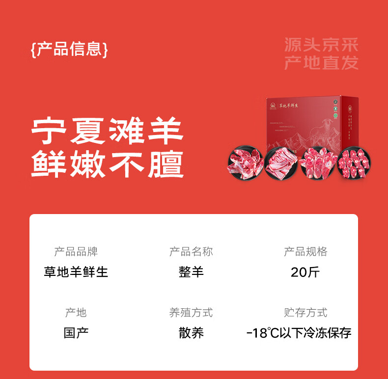 草地羊鲜生 宁夏滩羊分割整只羊20斤礼盒 羊肉生鲜 火锅滋补食材 源头直发