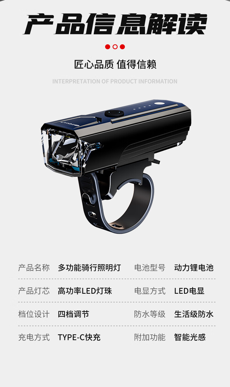 SHENYU自行车前灯公路山地单车夜间骑行手电筒智能感应长续航充电照明灯 【智能电显】智能光感-四档调节