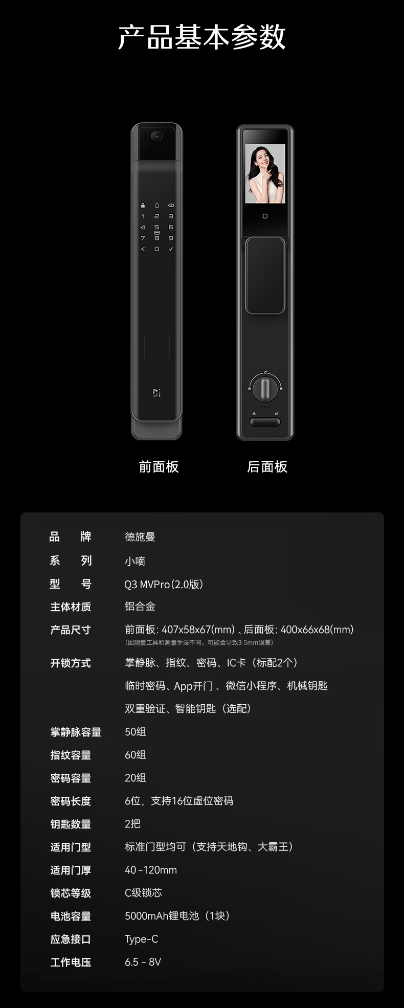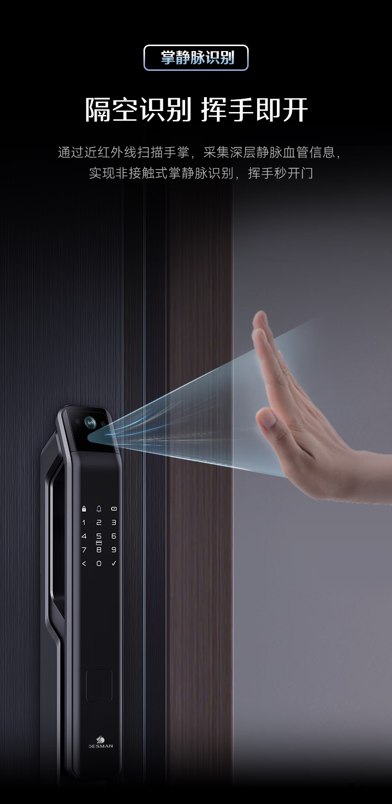 德施曼(DESMAN)智能门锁掌静脉识别可视猫眼大屏指纹密码防盗小嘀Q3MVPro(2.0)